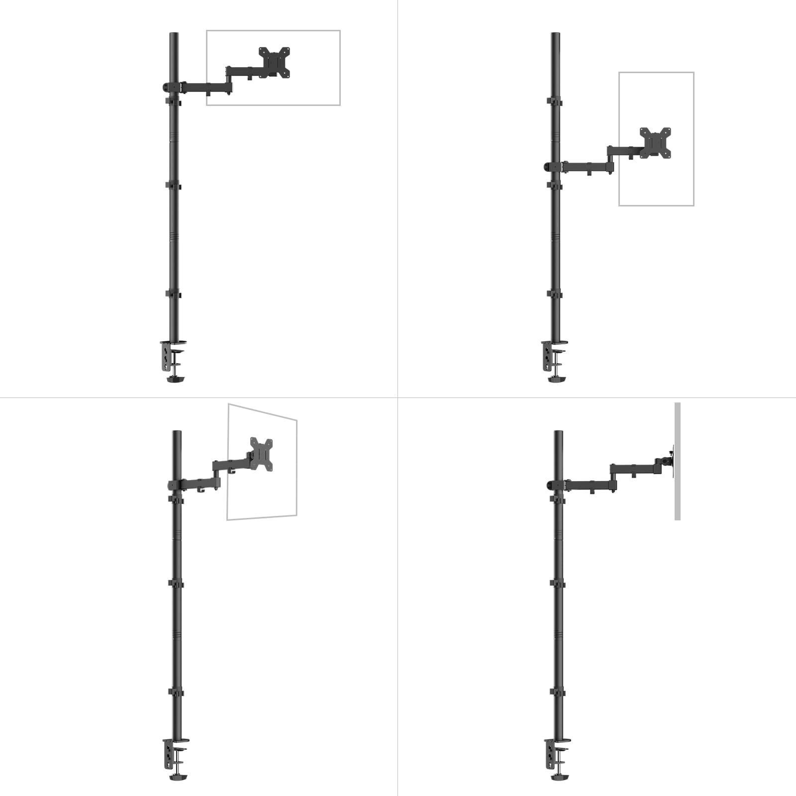 【対応モニター】液晶モニターを1画面設置できるディスプレイアームです。耐荷重は10KGで、VESA規格は75×75mm/100×100mmで、13~32インチPCモニターに対応します。