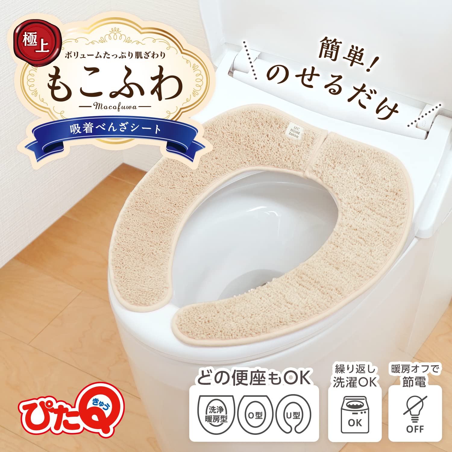 【人気】レック(LEC) ぴたQ 吸着 べんざシート 極上もこふわ タフト生地 (ベージュ) 全型対応/貼るタイプ/洗濯OK/薄型パッケージタイプ