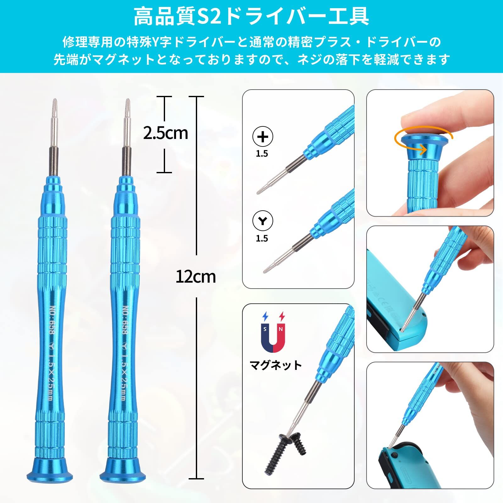 【注意事項】 ※Joy-conは精密な構造なので、修理は無理矢理はしないでください。修理完了致しましたら、Switchを起動してJoy-Conの補正をしてください。 ※Joy-Con本体は樹脂製なので、ネジを締め過ぎないようにご注意ください。 ※ネジは小さいので、紛失させる可能性があります。紛失させてしまいましたら本製品の予備ネジをご使用ください