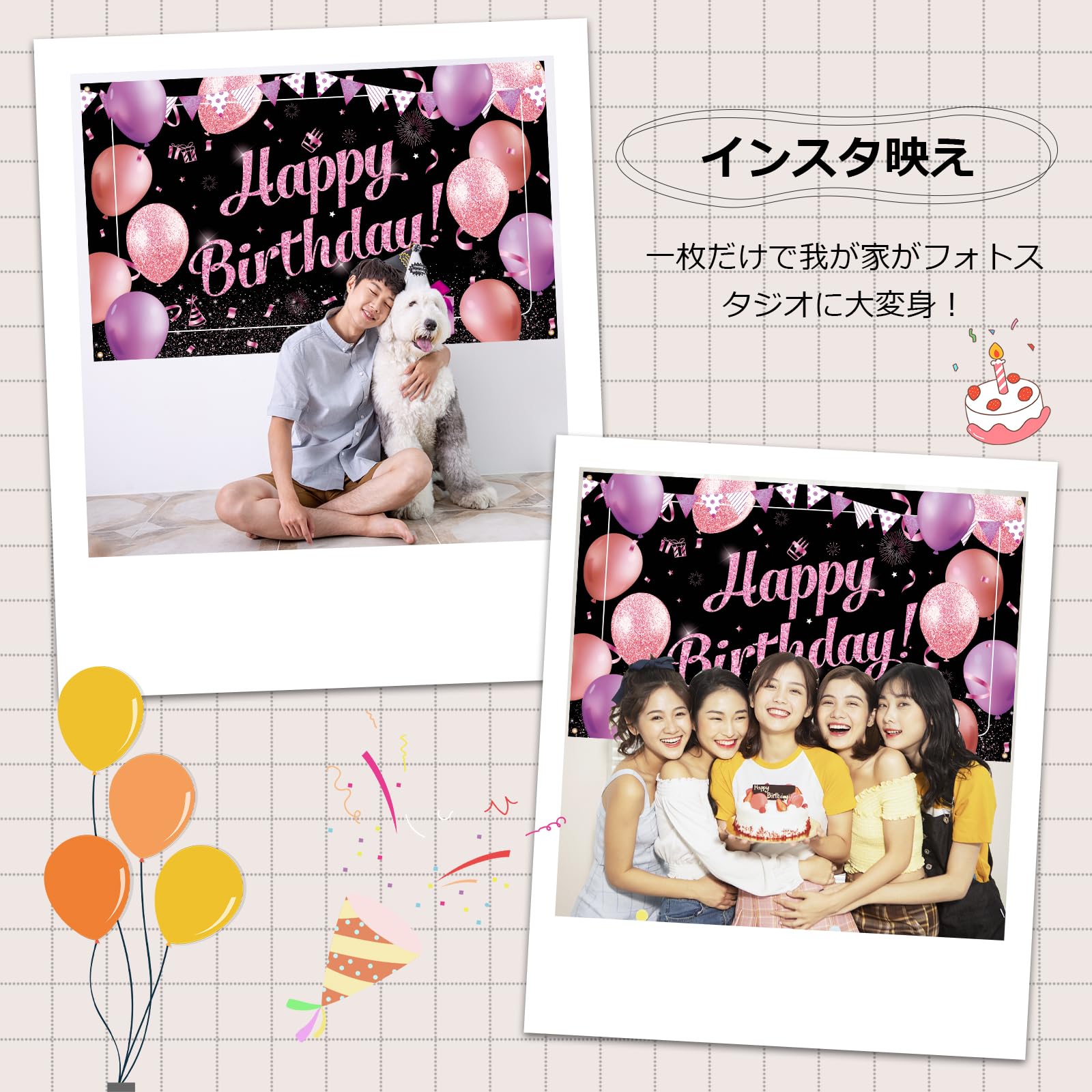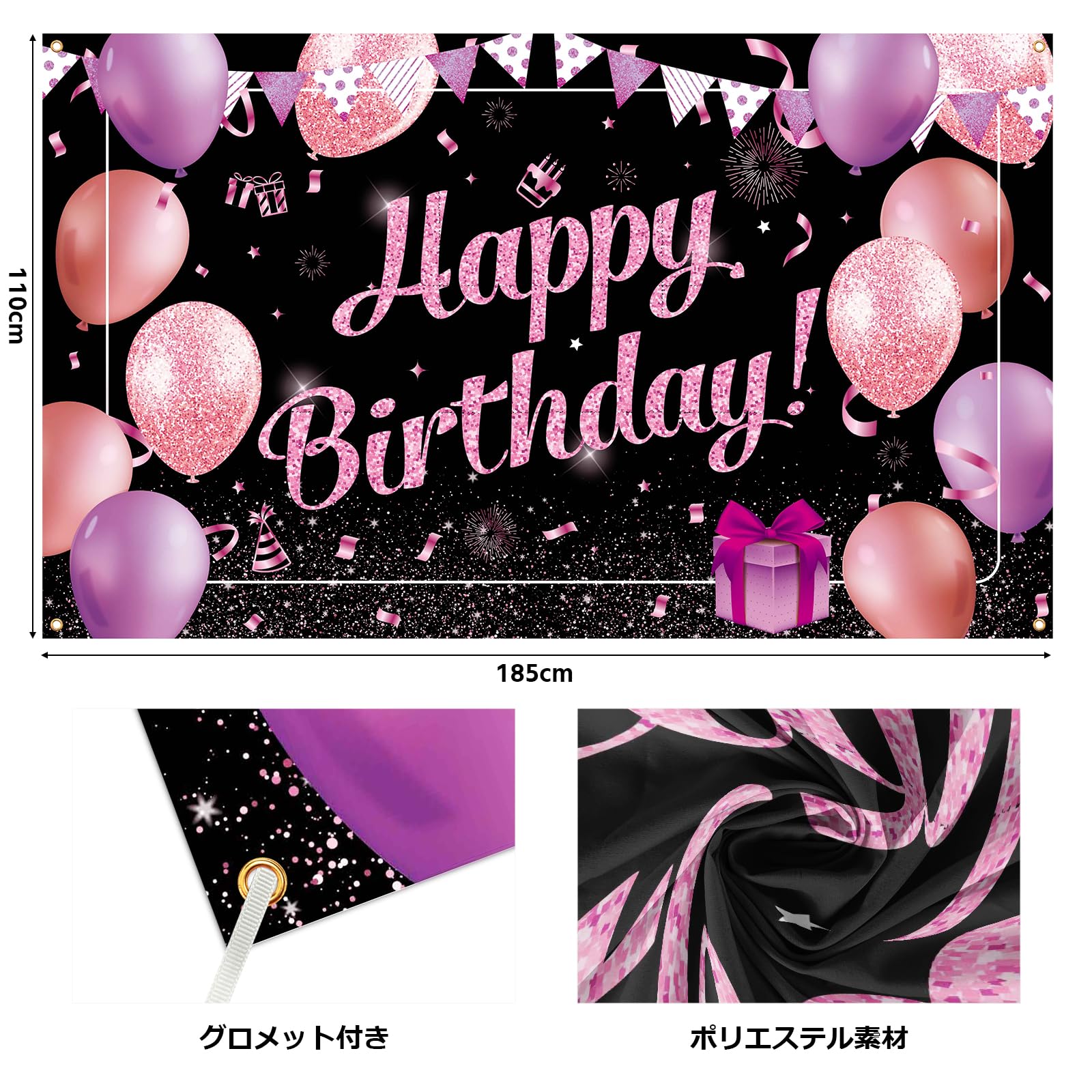 Paready バースデー タペストリー 誕生日 飾り付け 壁掛け 大判 フォトポスター 写真背景 壁飾り Happy Birthday パーティー 飾り おうちスタジオ シンプル おしゃれ 装飾 大人 女の子 男の子 パープル
