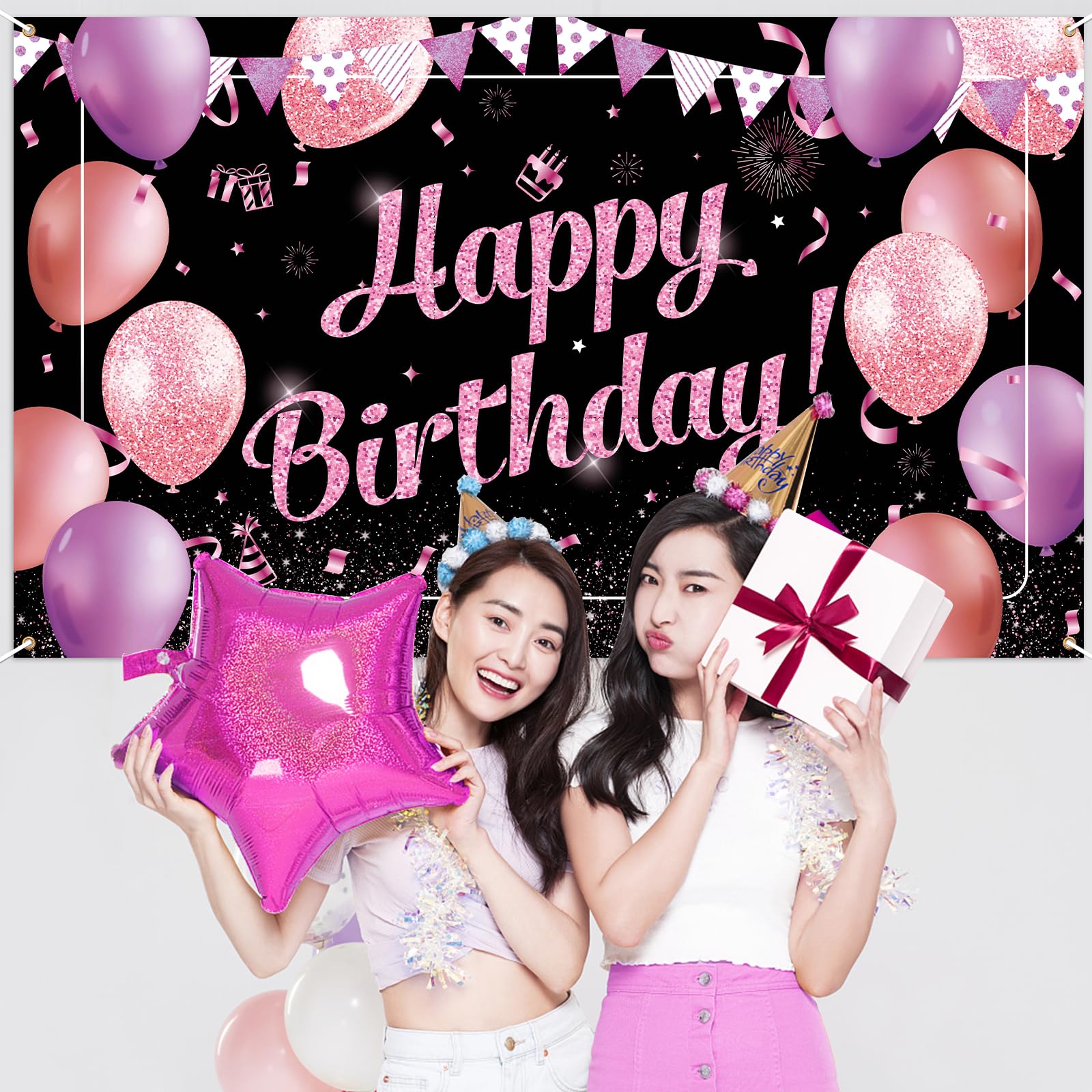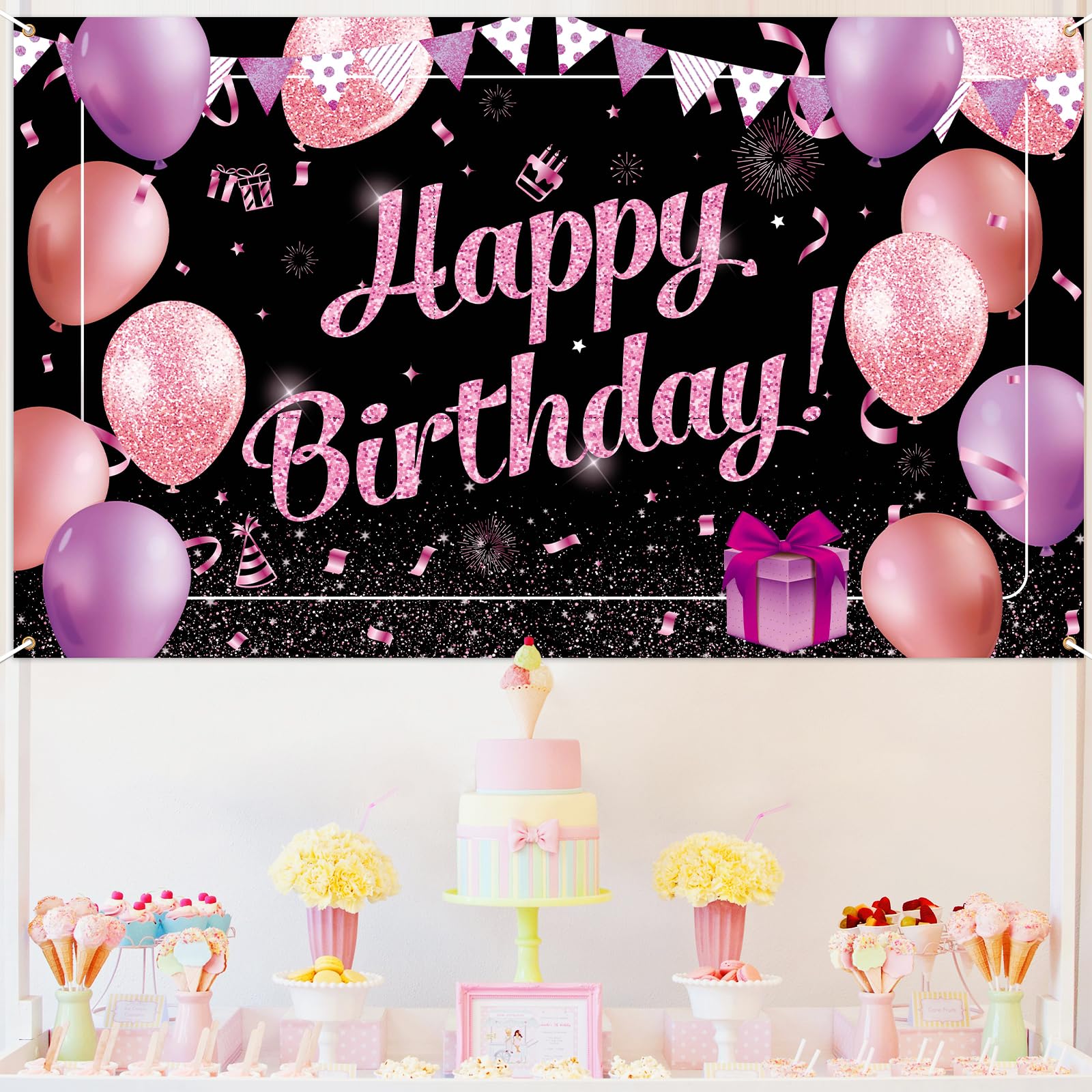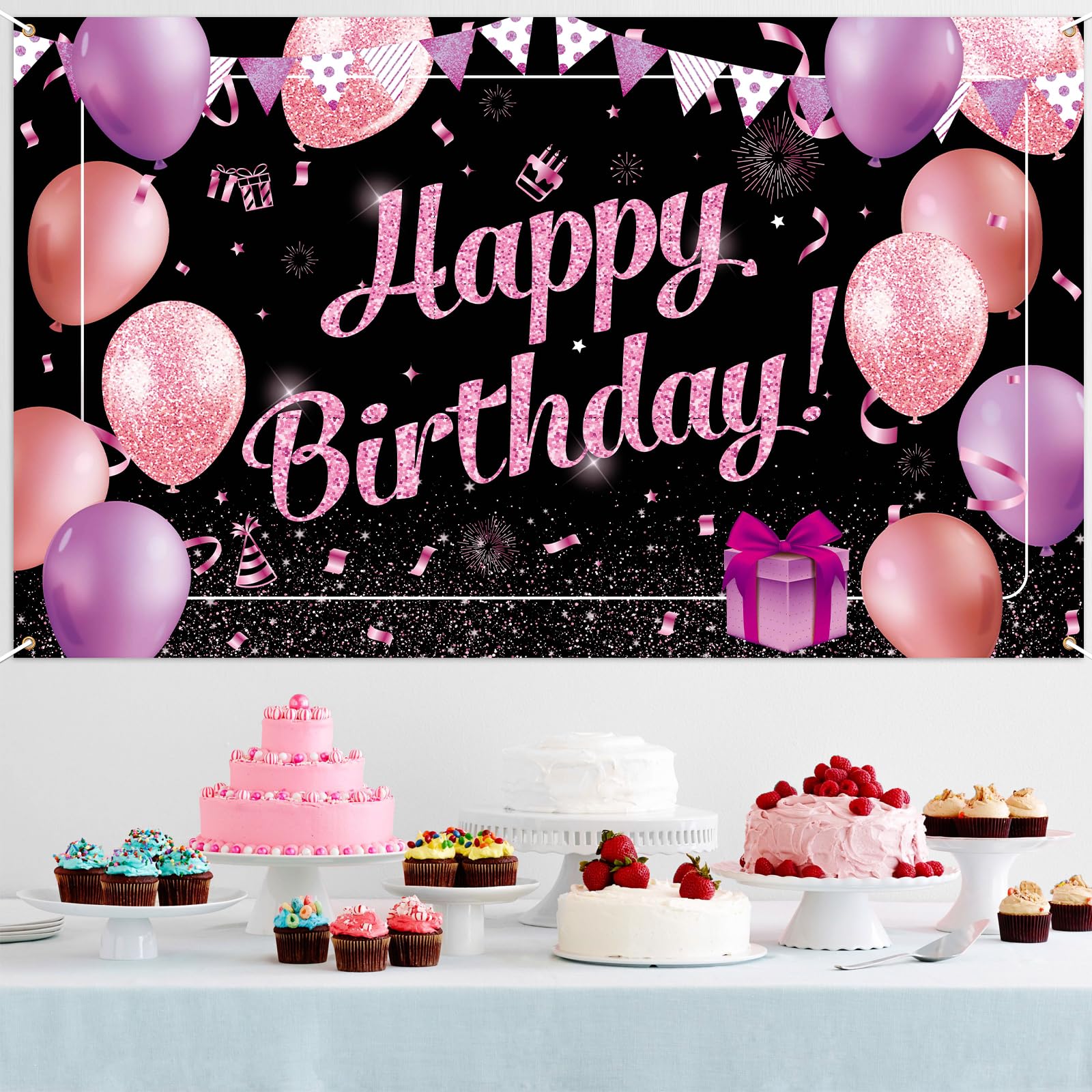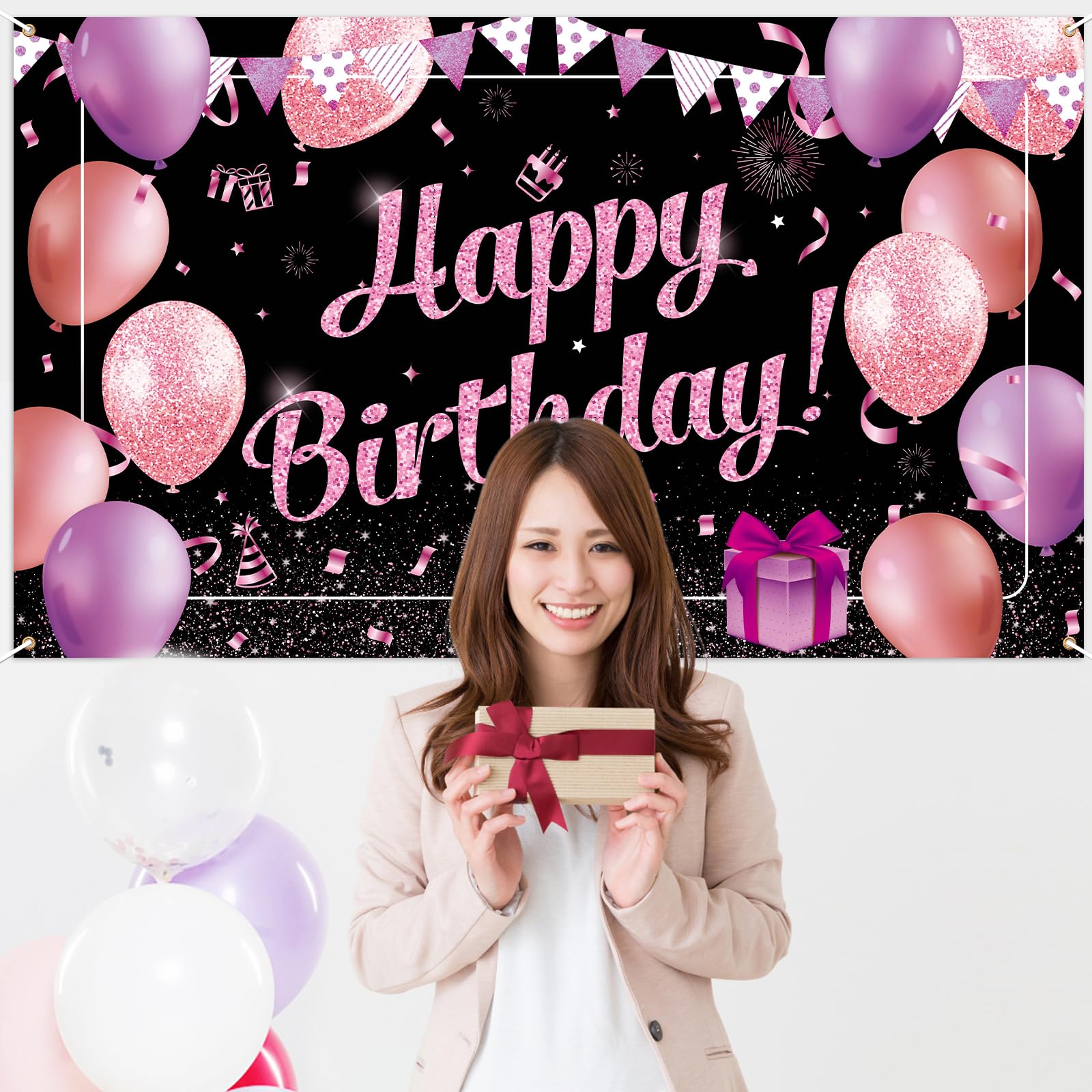 【新着特価】Paready バースデー タペストリー 誕生日 飾り付け 壁掛け 大判 フォトポスター 写真背景 壁飾り Happy Birthday パーティー 飾り おうちスタジオ シンプル おしゃれ 装飾 大人 女の子 男の子 パープル