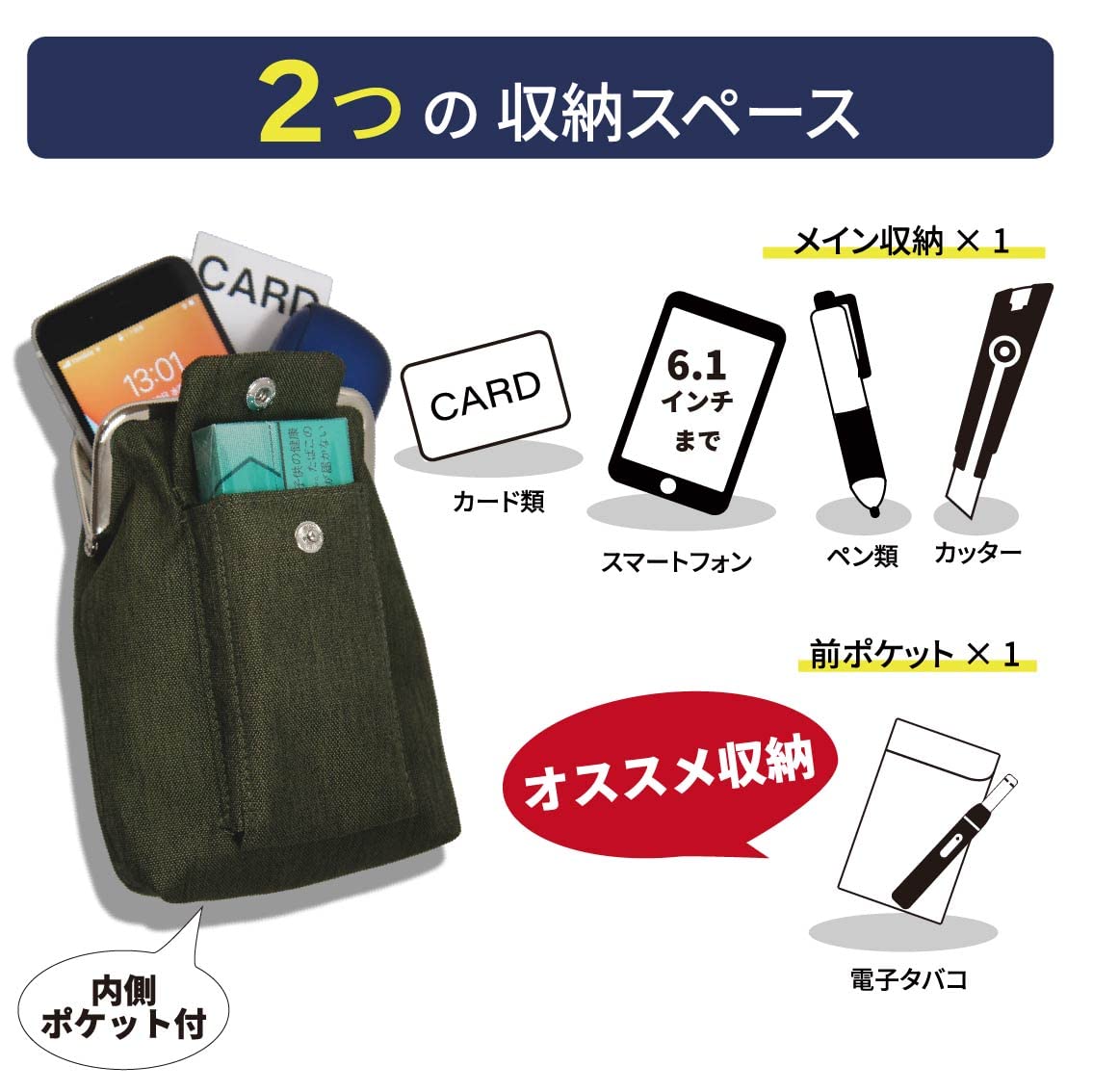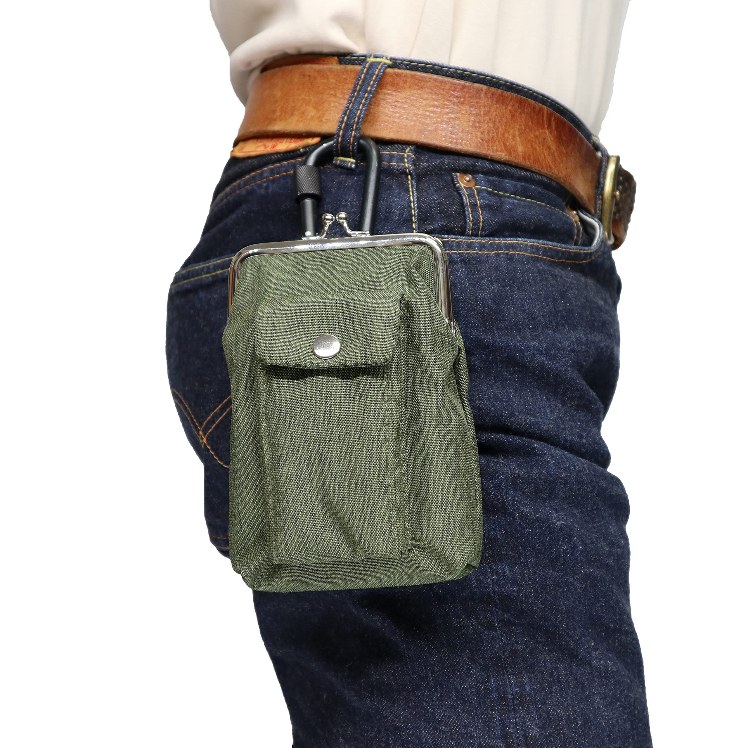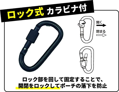 多機能ワークポーチ 2WAY装着ベルトループ/カラビナ付き WK-11 スマホや電子タバコも収納可能 作業用のペンやカッター入れに最適 落下防止のネジロック機能カラビナ付き 本体生地はPUコーティングで防水加工済み
