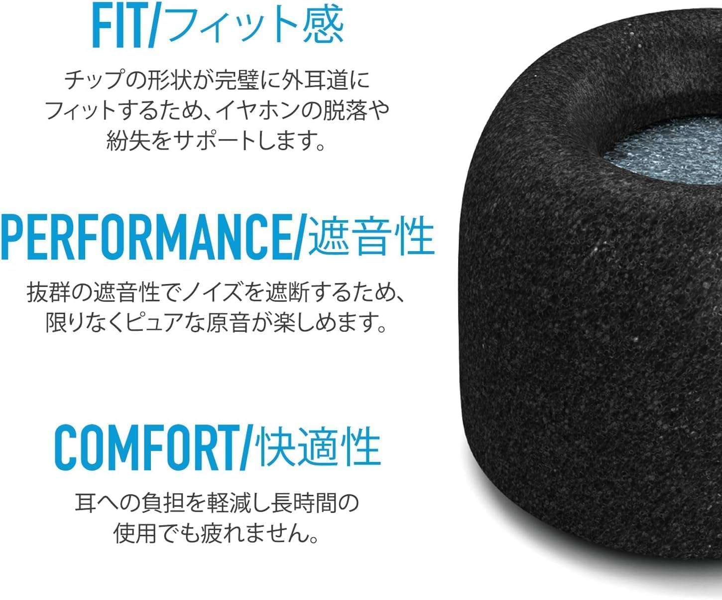 フィット感 コンプライイヤホンチップの素材である低反発ポリウレタンは、シリコンより約30倍やわらかく、しかも体温で反応して伸縮するので耳穴に隙間なくフィットします