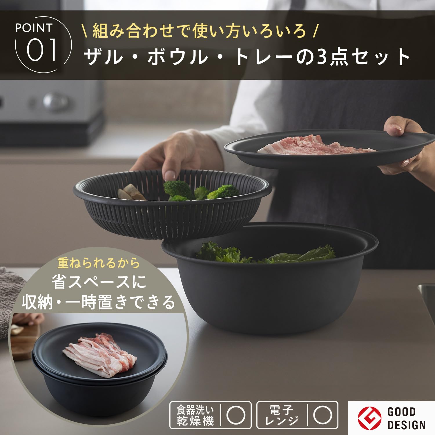 【忙しい毎日の時短料理に】ザル・ボウル・トレーの3点セットで「水切り→加熱→食卓or一時保存まで」がスムーズに。洗い物を減らして時短調理ができます。