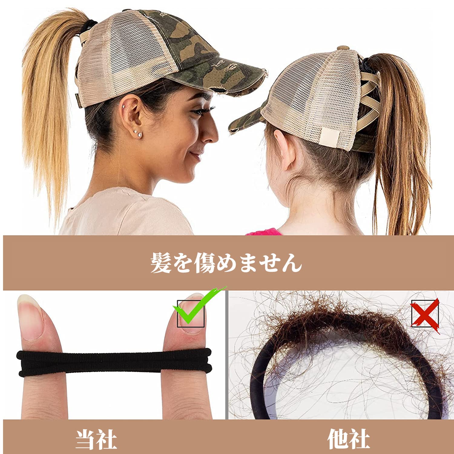 ポニーテール ヘアゴム 50個セット 太め 結び目なし リングゴム 洗える 輪ゴム ラージストレッチヘアネクタイヘア 太くて重い巻き毛用 (ブラック)