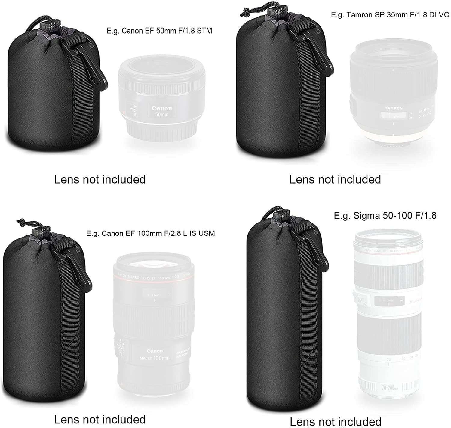 保護性:これらの柔らかいネオプレン袋では、すべてのレンズの安全を確保します。