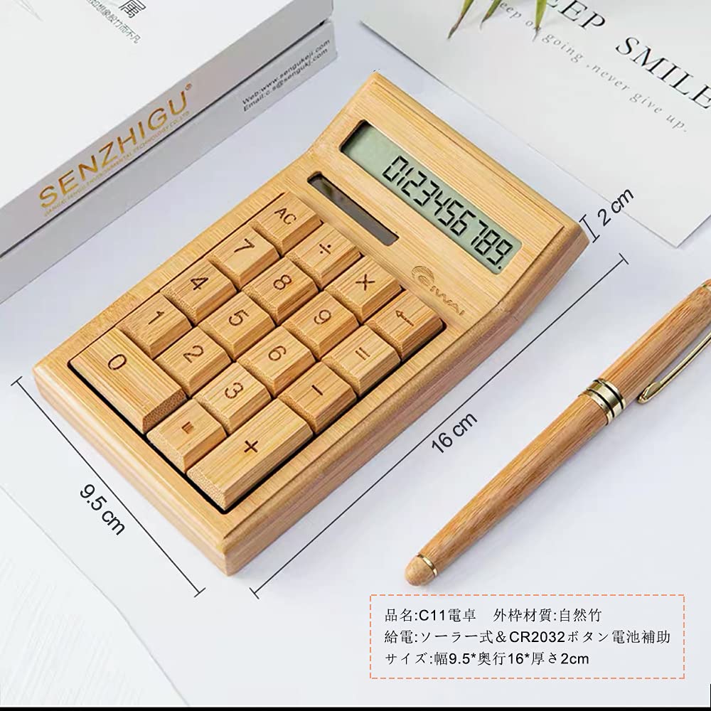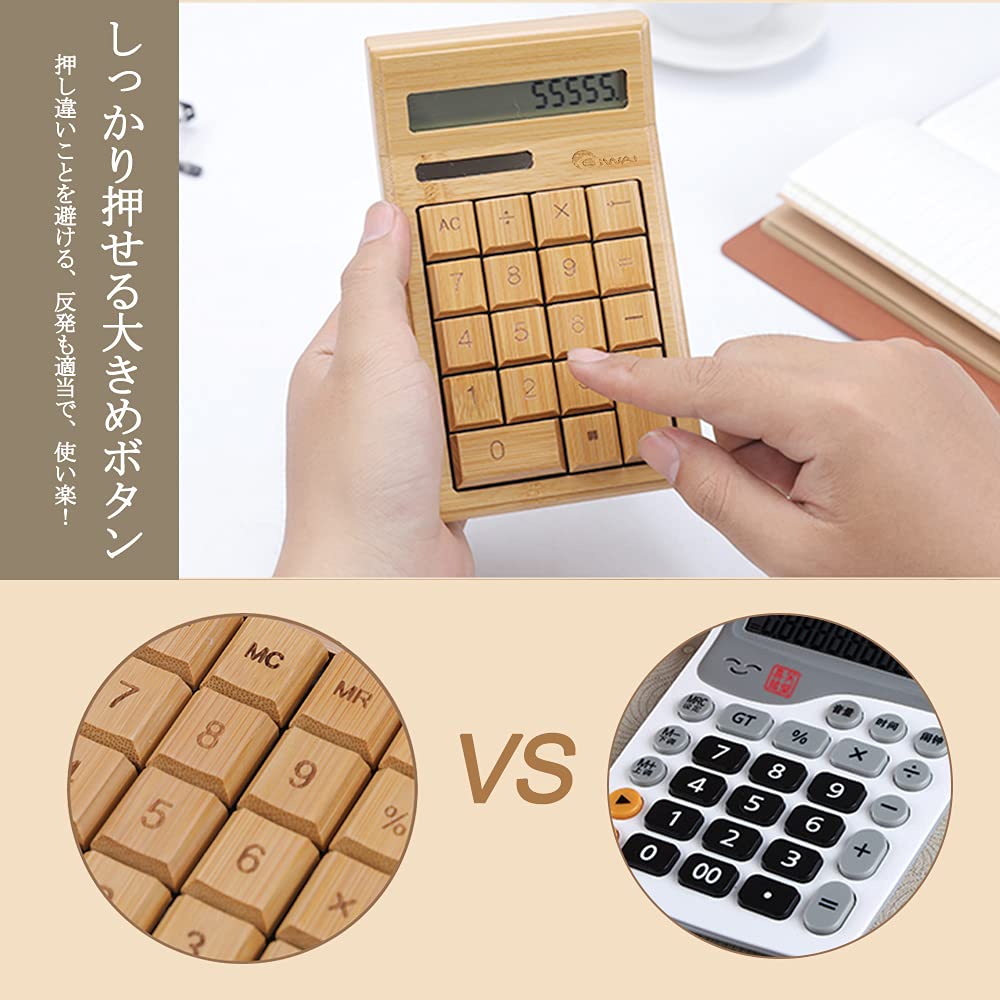 OIWAI 電卓 おしゃれ かわいい 計算機 木 竹製 12桁 大きめキーボタン 表示も見やすい ソーラー給電 クリエイティブ ナチュラル 家庭用 和食店のお会計 店のカウンター にお薦め(9.5*16)