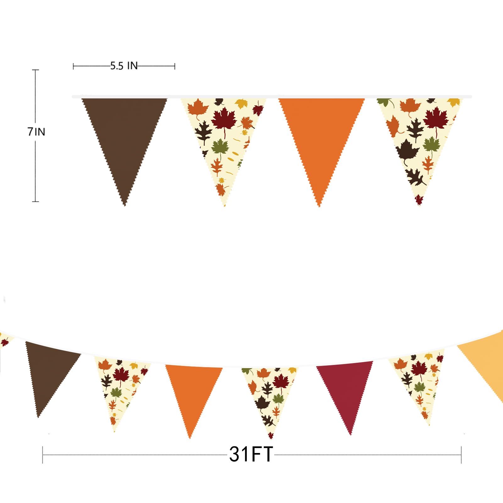 ??【商品情報】1* 茶色オレンジ黄色ブルゴーニュの紅葉三角旗布ガーランドバナー、旗の数:36枚。全長:9.5M/31Ft。単一のペナントの寸法:15cm/5.9in x 17.78cm/7in (幅 x 高)。