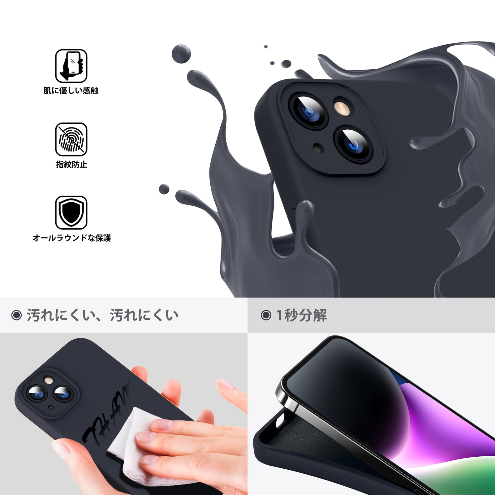 【耐衝撃・耐落下・傷防止】iPhone 14 液状シリコンケース、4層プロセス【液状シリコンケース】【硬質PCボード】【マイクロファイバーパッド】【撥油層】で携帯電話を摩耗や損傷から守ります。
