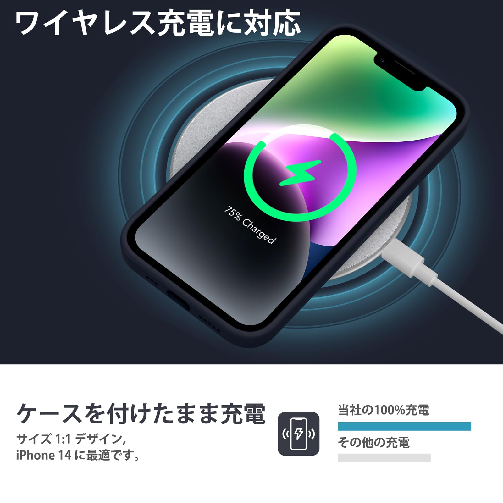 【ワイヤレス充電に対応】 iPhone 14シリコンケースはワイヤレス充電に対応しており、ケースを外さずに携帯電話をワイヤレス充電できます。