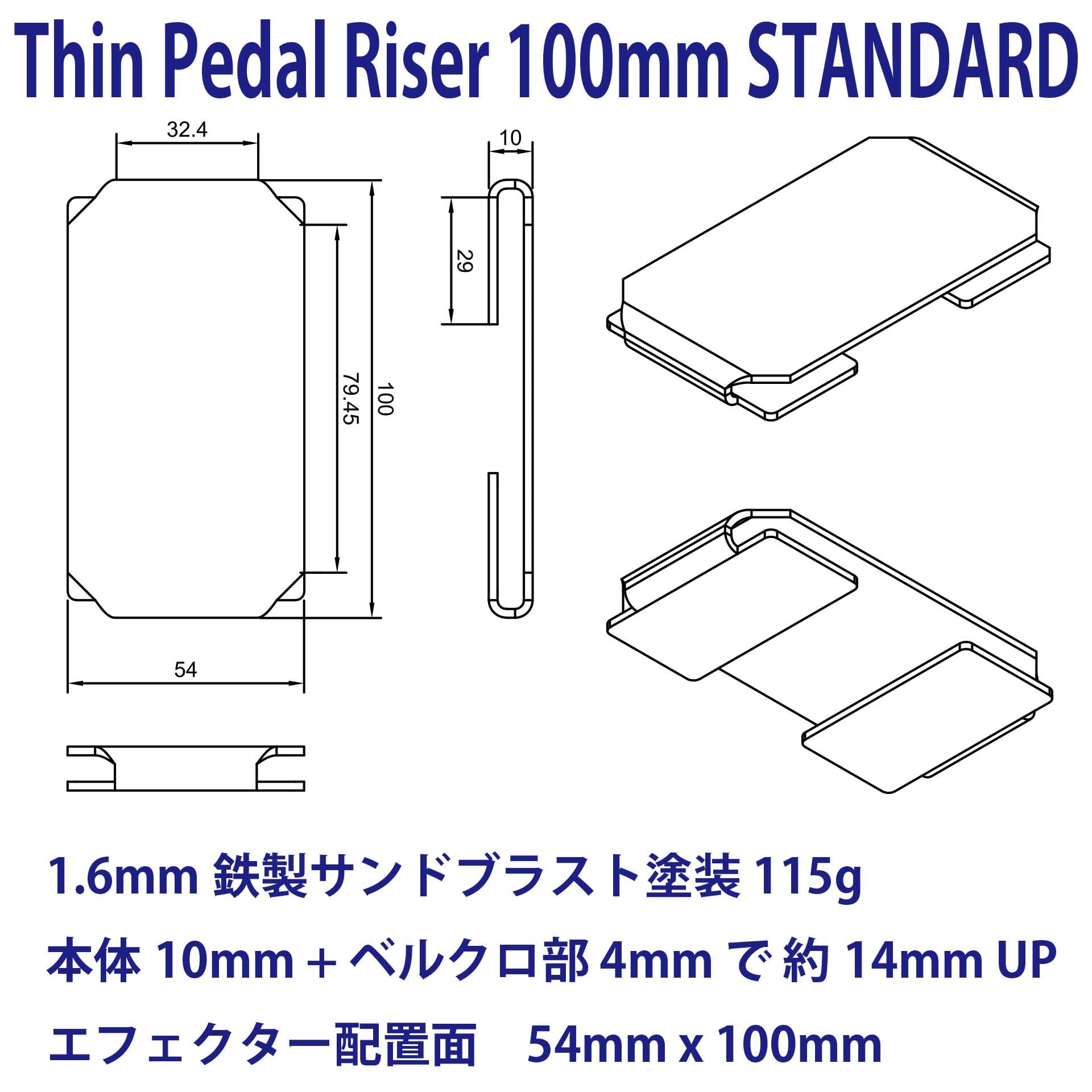 【在庫処分】Thin Pedal Riser 【100mm STANDARD】 薄型 コンパクト ペダルライザー エフェクター マジックテープ かさ上げ 底上げ 固定用