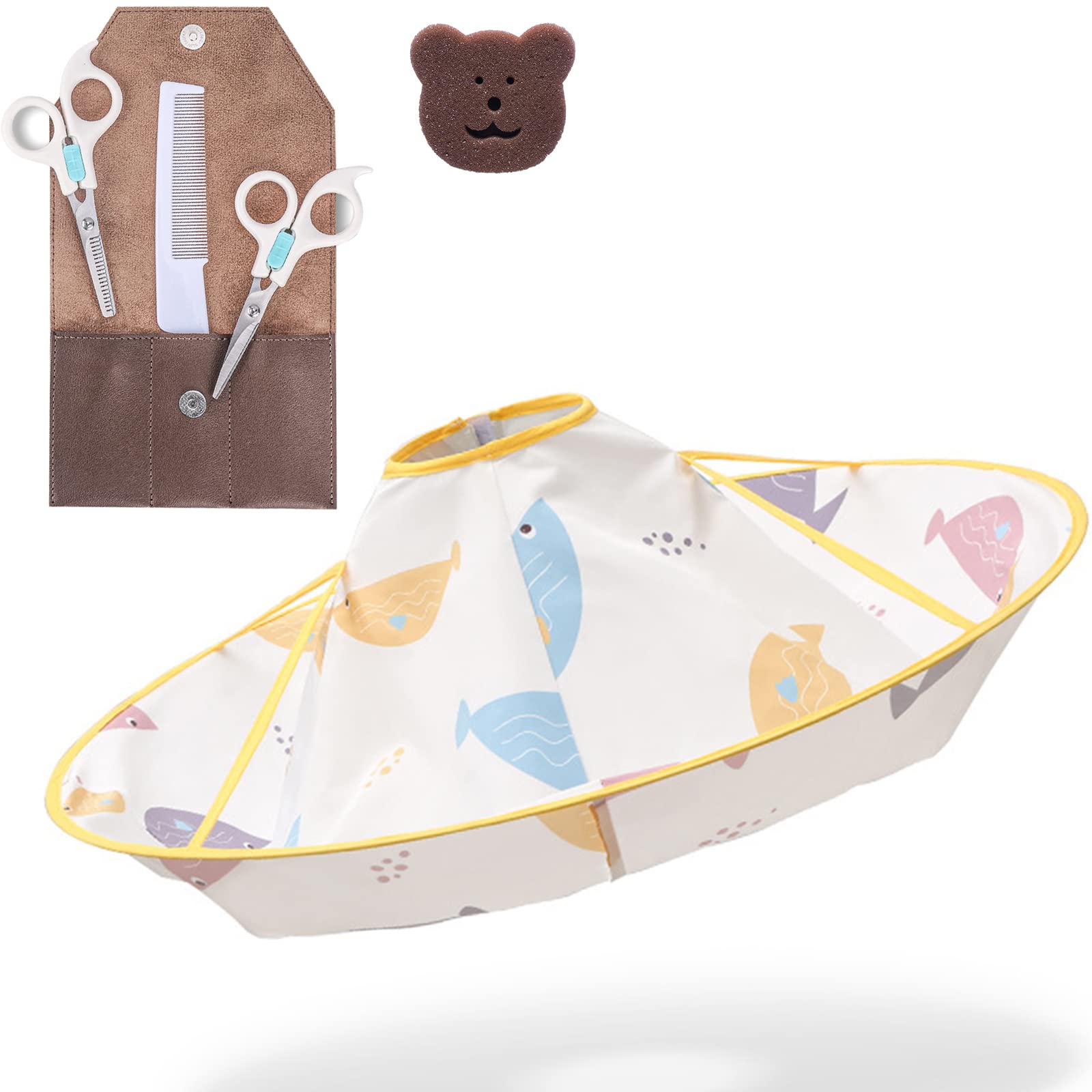 MINGYI 散髪 ヘアカット すきばさみ はさみセット子供用 散髪 コンパクト 散髪道具 収納しやすい 散髪ケープ付き- 可愛い魚