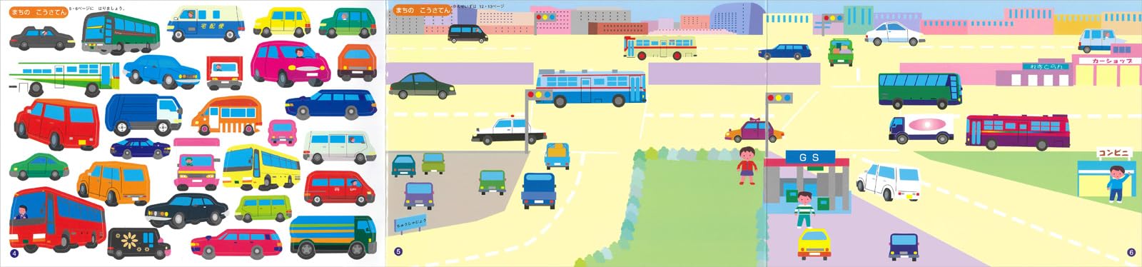 街の中や高速道路で見かける身近な車、働く車、電車、にちょっぴり船や飛行機まで登場する乗り物好きキッズにぴったりなシールブック。