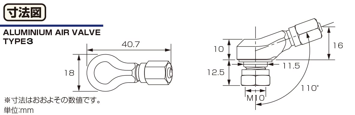 チューブレスホイール専用の横向きエアーバルブです。