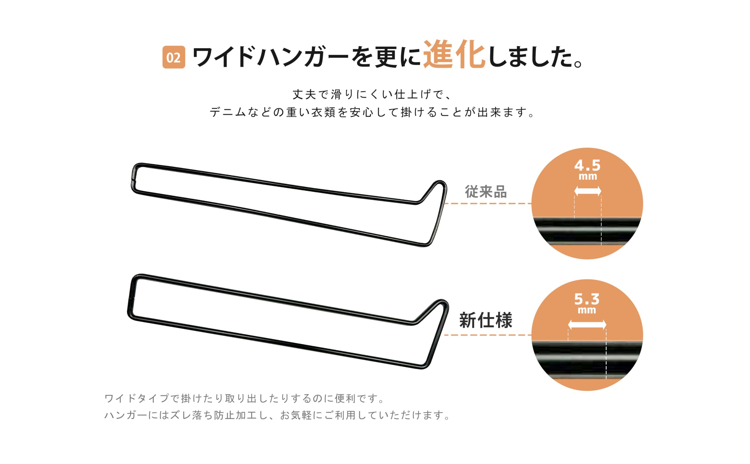 【ズレ落ち防止】ハンガーの先端には返しが付きで、収納物が滑り落ちにくいです。ワイド設計なので、ゆったりとパンツやスラックスを掛けることができます。取り出しやすい左右スイング式として服同士も干渉せず、パンツから簡単に一着を選べます。