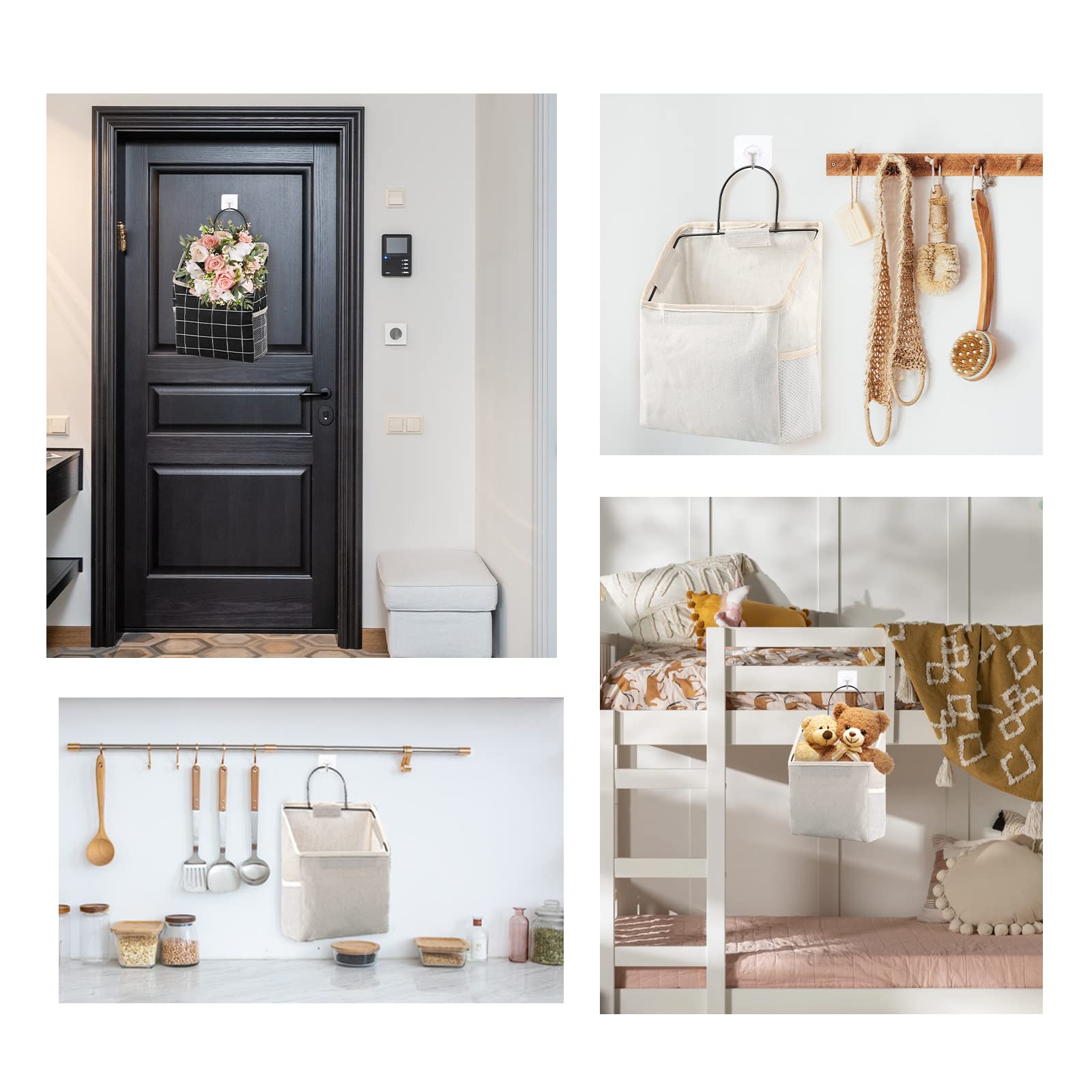 Surblue ウォールポケット 壁掛け収納バッグ 粘着フック付き クローゼット吊り下げ収納バッグ バスルーム寮収納 寝室用リネンコットンオーガナイザー (グレー)