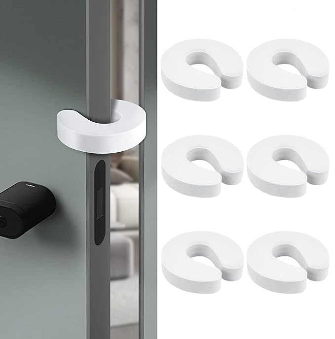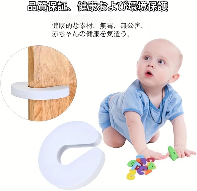 ドアストッパー 【6個セット】 ドア 指挟み防止 子供が自分の指をつまむのを防ぐ ドア止め ベビーガード チャイルドロック ストッパー 赤ちゃん ペット キャビネット ドア 引き出し 扉 玄関 室内 猫 犬 子供安全対策 防護具 厚さ1.9cm ?【製品仕様】製品内容:ドストッパー6個。製品サイズは9.5*9*1.9cmです。他の購入者様から、薄いものは外れやすいというご意見をいただきましたので、製品サイズを厚くしました。従来の1.5cmから1.9cmに厚みが増し、より安全にご使用いただけます。?【指挟み防止、ドアのロックを防止】:当社の指挟み防止フィンガーガードは、ご家族の安全を確保します。柔軟なC字型デザインはあらゆるサイズのドアにフィットし、ドアとドア枠の間に柔らかいクッションを提供し、指の怪我を防ぎます。ベビードアストッパーは、ドアがバタンと閉まるのを防ぎます。当社のドアロッククリップがあれば、お子様やペットが二度とドアに閉じ込められることはありません。?【安全、無毒、無害な素材】:高品質のEVAフォーム製で、弾力性と耐衝撃性に優れ、変形しにくい硬質素材です。適切な保管と使用をすれば、長期間ご使用いただけます。?【使い方簡単】:この指挟み防止プロテクターはほとんどのドアに対応しています。チャイルドドアストッパーをドアの側面に取り付けるだけで、ドアが勢いよく閉まるのを防ぎます。