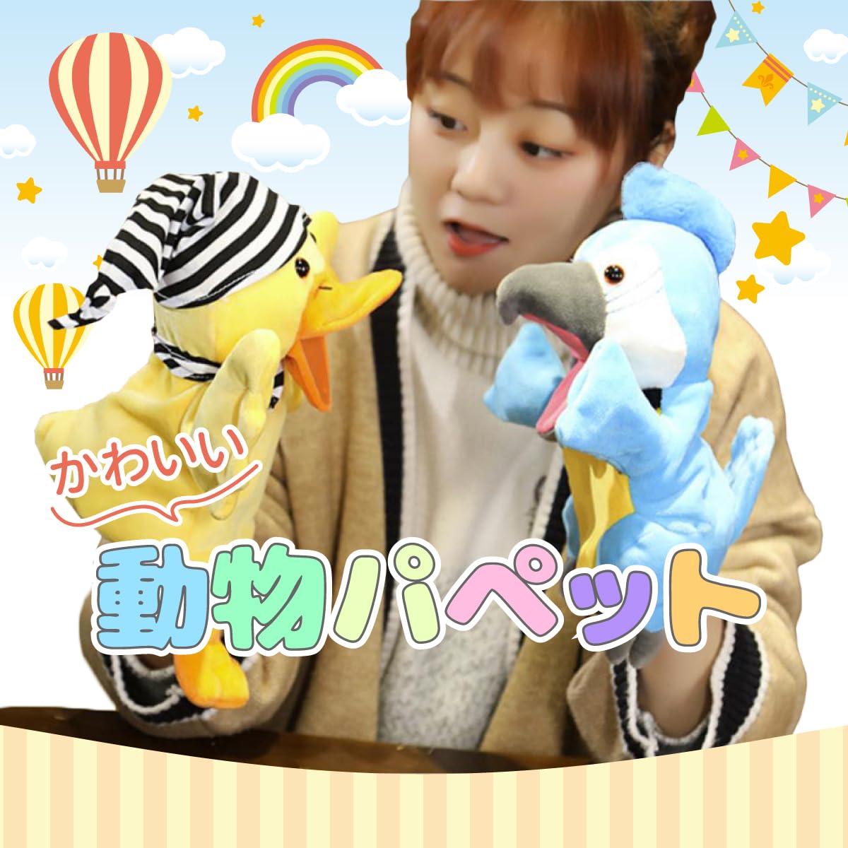 【創造力と表現力を育む可愛らしいぬいぐるみ】 パペット人形を使った人形劇や腹話術で、子供たちの創造力や表現力を促進します。さまざまな種類のハンドパペットが揃っているので、子供たちは飽きずに楽しむことができます。親子で一緒に遊ぶ事で絆を深める事も出来ます。