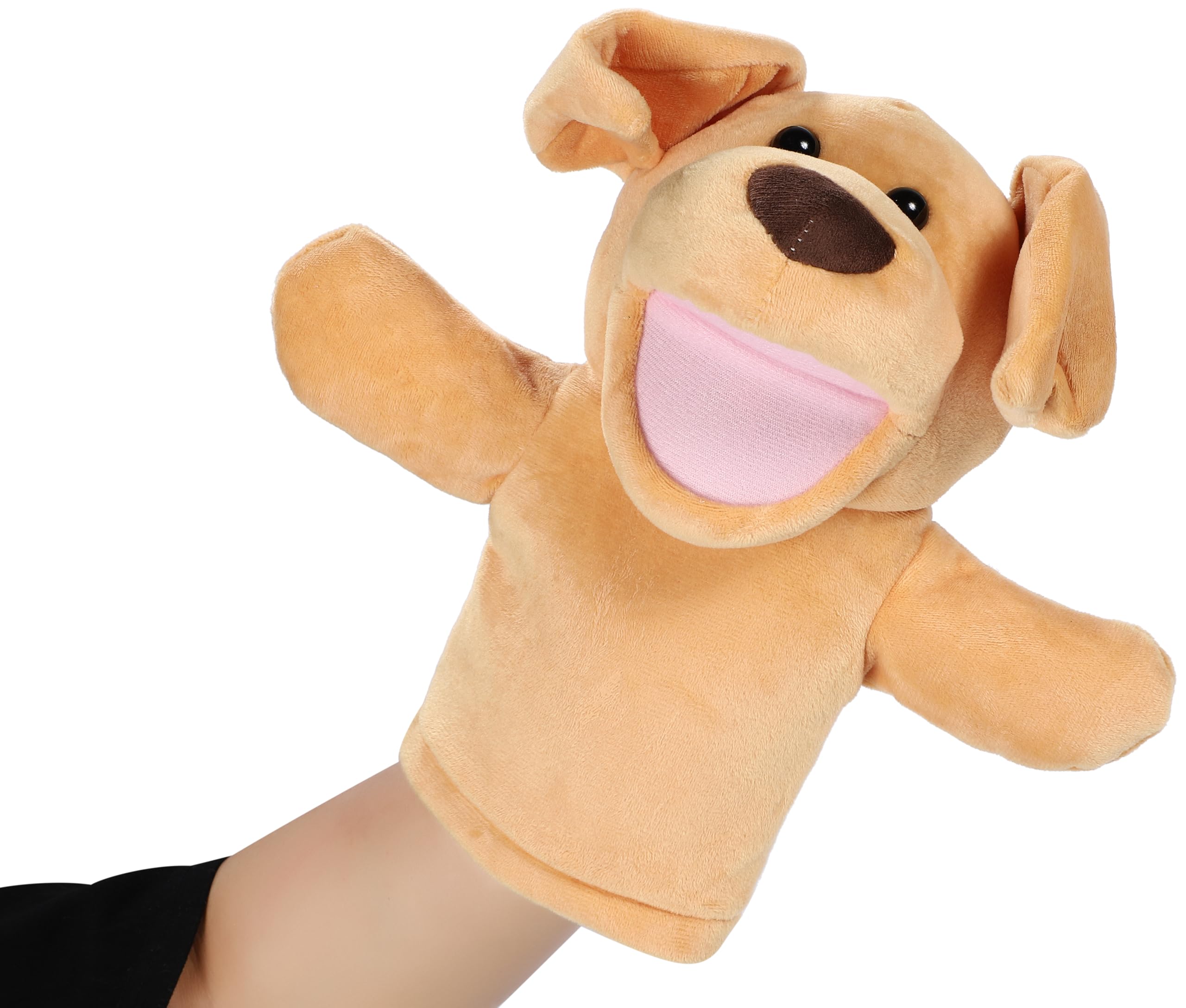 【子供が大好きな動物ハンドパペット人形】 小さな子供たちに人気の手人形・ぬいぐるみ。手と口を動かせるので子供たちはまるで本物の動物と遊んでいるかのように楽しめます。楽しい遊びを通じて、子供たちの想像力や創造力を育むことが出来ます。お子様の笑顔が見られる素敵なハンドパペット。かわいらしい犬のデザインは子供たちにも大人気です。