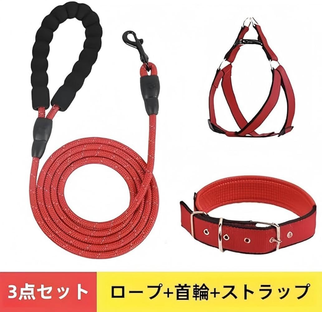 セット内容: 丈夫なリード、調整可能な首輪、快適なハーネスの3点セットで、愛犬の散歩に必要なアイテムが揃います