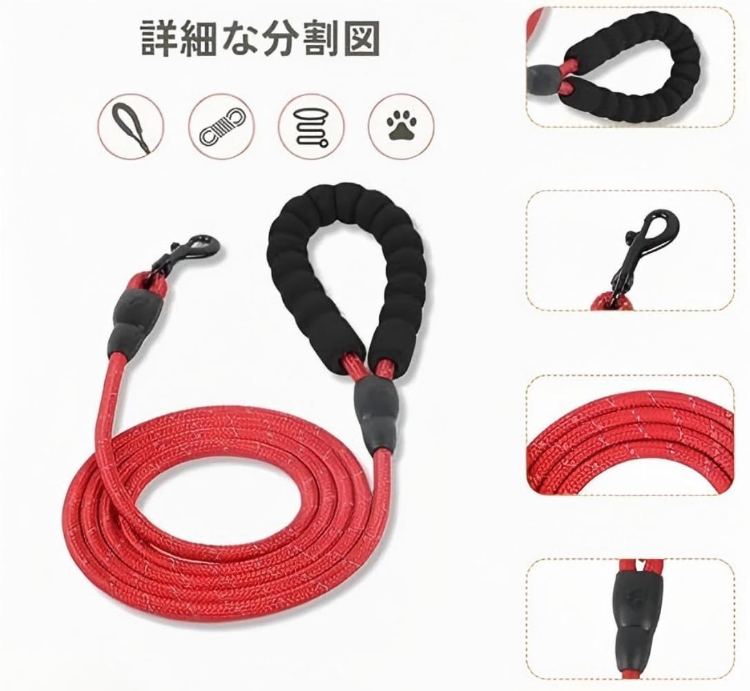 リード仕様: 長さ約150cm、編み込み加工の丈夫なロープ素材で、手にやさしい握り手付き設計