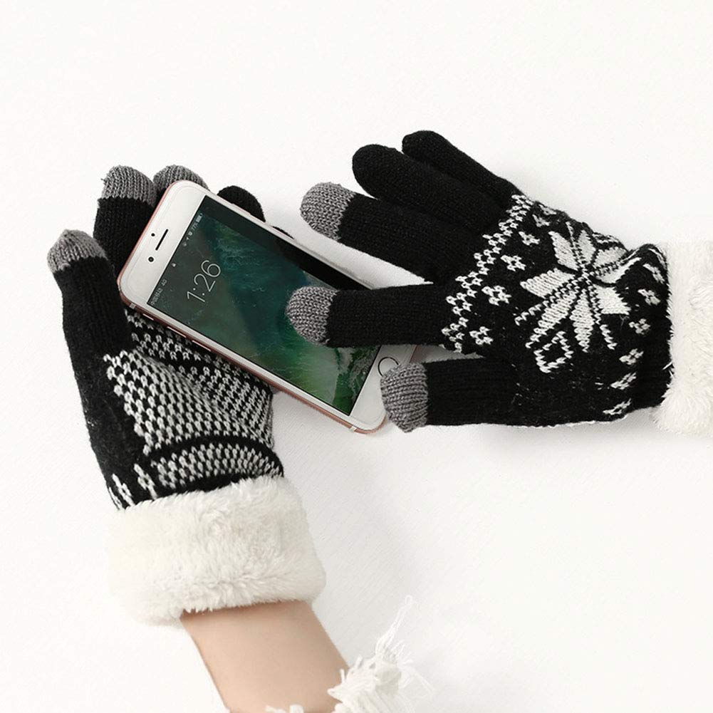 [Laisve] 反応スマホ手袋5色 ぽかぽか裏ボア 腕温かい 防風自転車通勤通学 男女兼用 レディース メンズ 5本指 学生 厚手毛糸編み ニットてぶくろ クリスマス