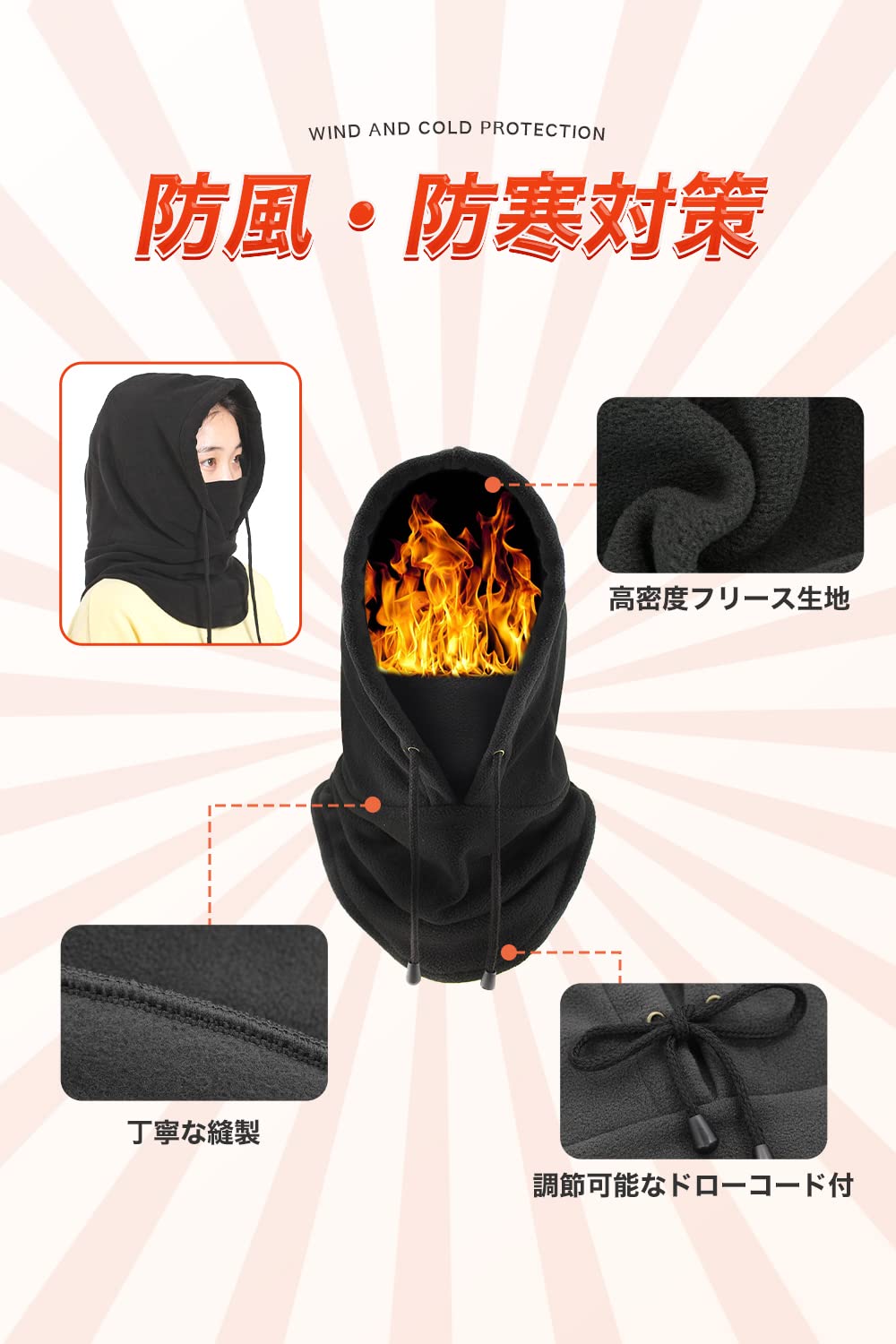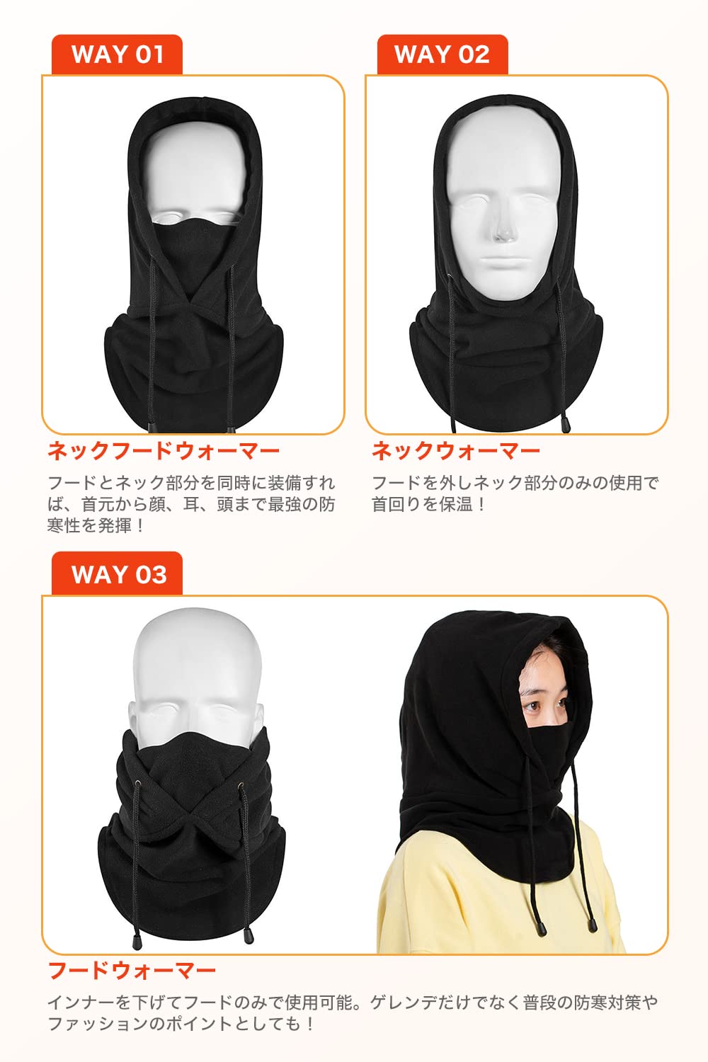 [SooPii] フードウォーマー ネックウォーマー フェイスカバー バラクラバ【3Way・高機能断熱フリース素材・360度保温防風】 フード付きネックウォーマー 息苦しくない 目出し帽 ネックカバー 冬 バイク・アウトドア・スポーツ・スキー・スノーボード
