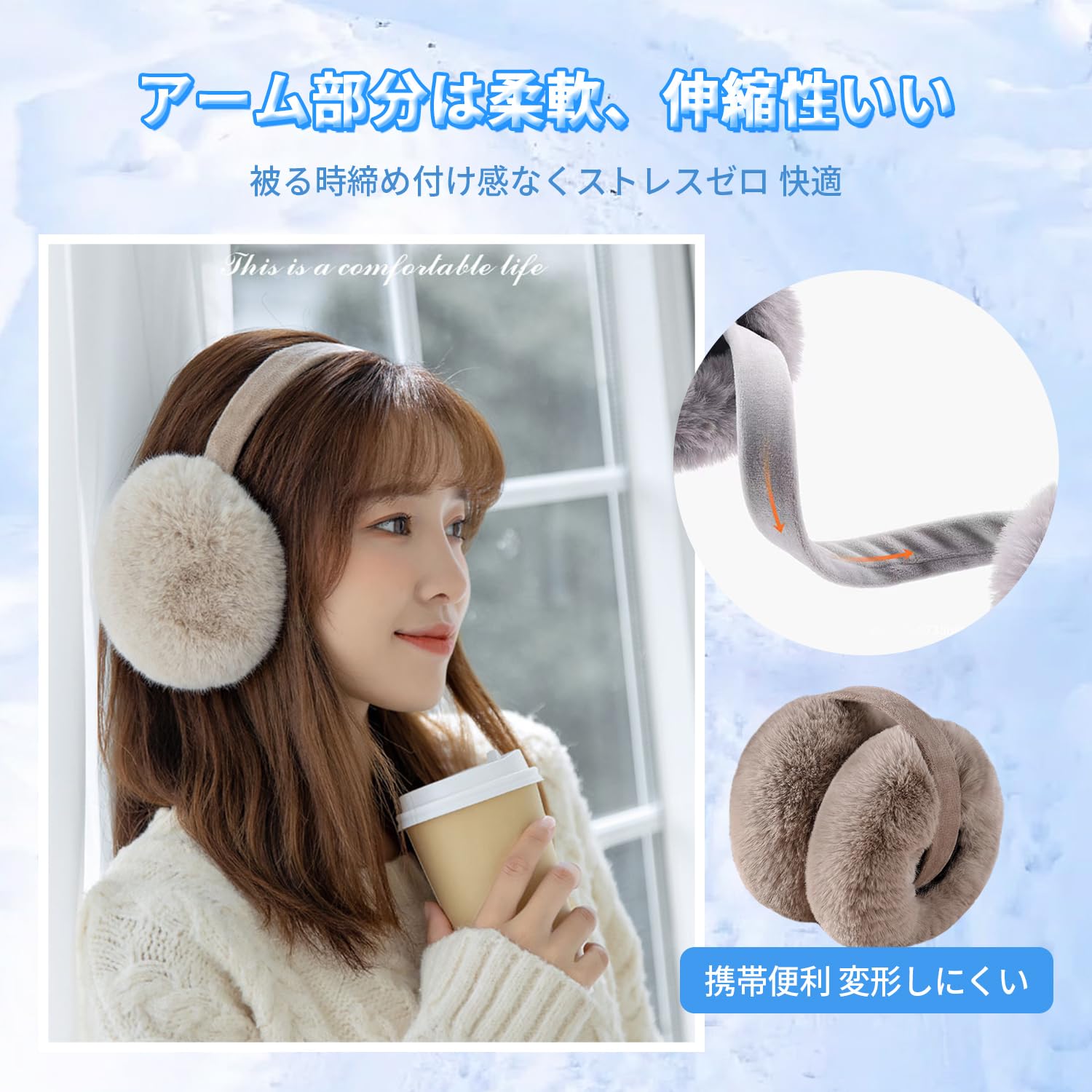 ?【フワフワ贅沢なファー 暖かい】イヤーマフは触り心地兎のファーのようなフワフワ、暖かいフェイクファーを大量贅沢に採用され、一目惚れになるアイテムです。柔らかく、馴染みよく、ふんわりと耳をしっかりカバーして、外部空気の侵入をシャットアウトしてくれ、内部暖かい体温の流出を防止でき、防寒保温力抜群な耳あてです。使う瞬間暖かさが感じれる使用心地最高、長時間着用してもストレスないイヤーウォーマーです。