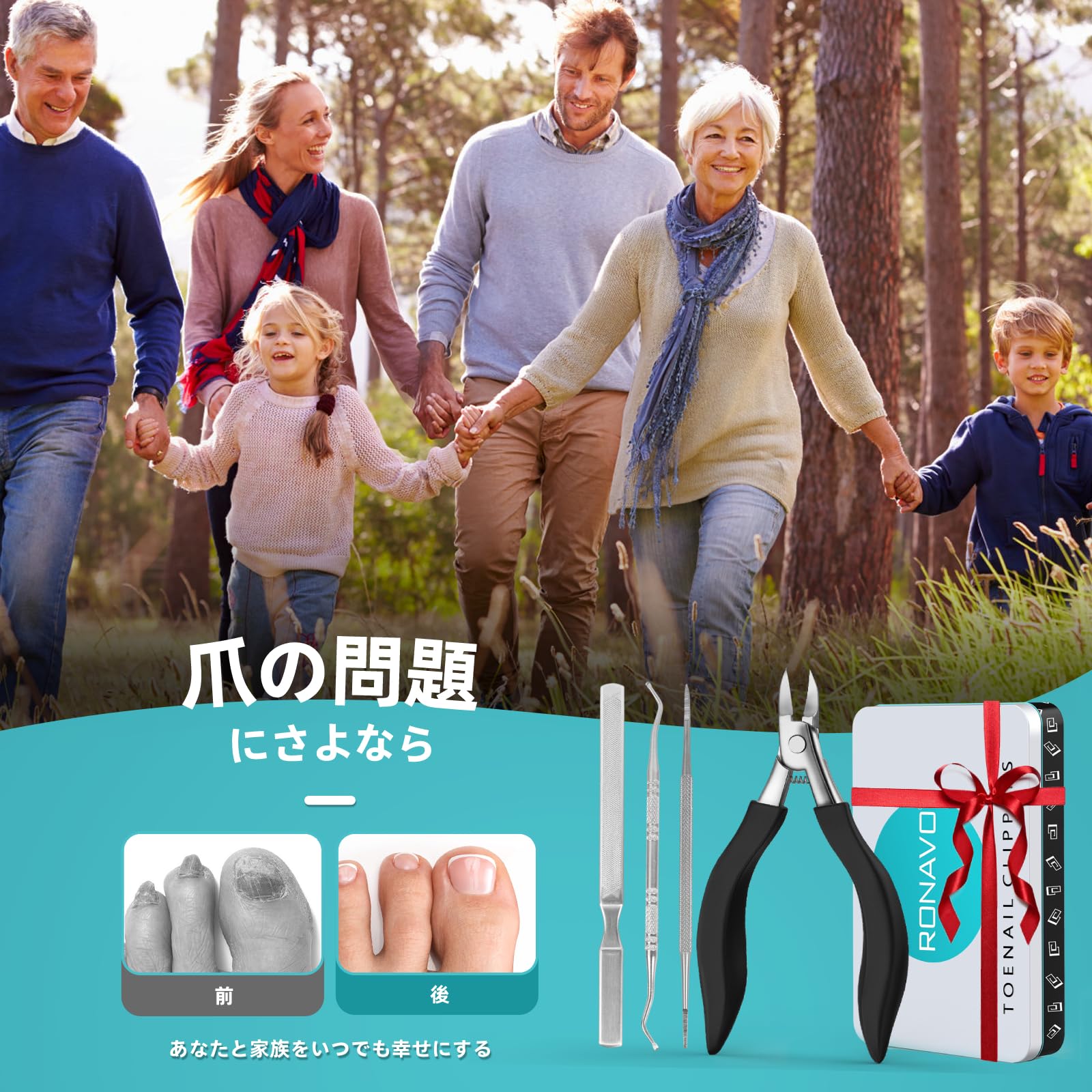 ??【愛のこもったプレゼント】 RONAVOの爪切りはあらゆる種類の爪に適しています。家族や友人の誕生日、サンクスギビング、クリスマスなどの贈り物に最適。便利な道具を知ってもらい、最高に気持ちいい足爪のお手入れを体験してもらいましょう。