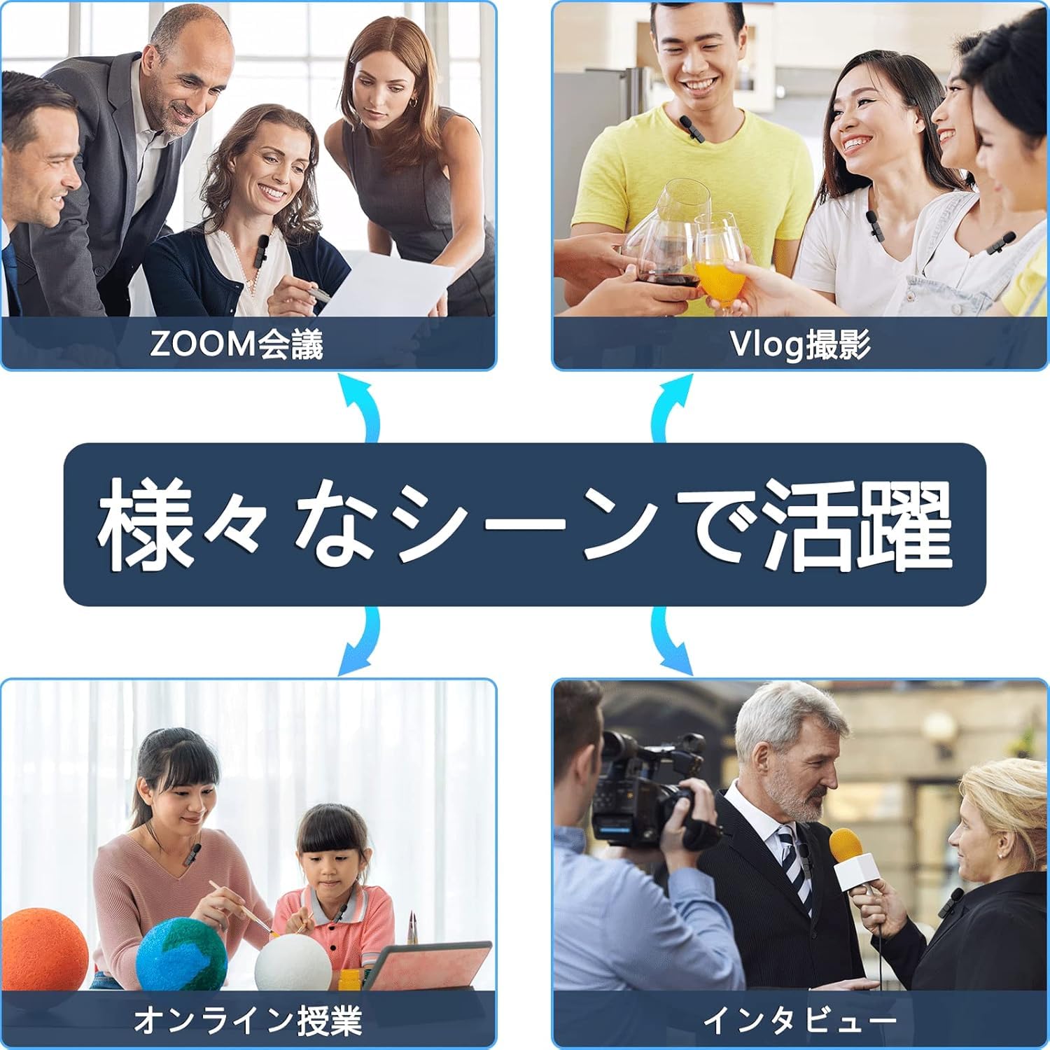 【2人同時使用 & 即プラグ&プレイ】2人が同時に使用でき、デュアルマイク機能を備えたこのラベリアマイクは、面倒な設定や接続、専用アプリのダウンロードは不要です。デバイスに差し込むだけで自動的に接続され、すぐに使用可能です。シンプルな操作性で、初心者でも安心してお使いいただけます。