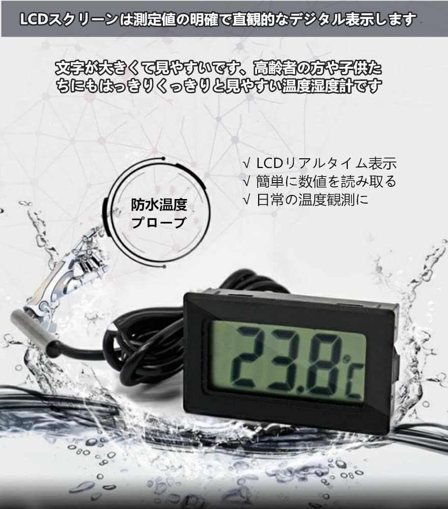 【温度管理に便利】温度湿度計は埋め込まれた設計されて、ペットの爬虫類タンクなどの温度測定に最適です。ペット管理、冷蔵庫・冷凍庫、温室の管理、その他温度管理に。