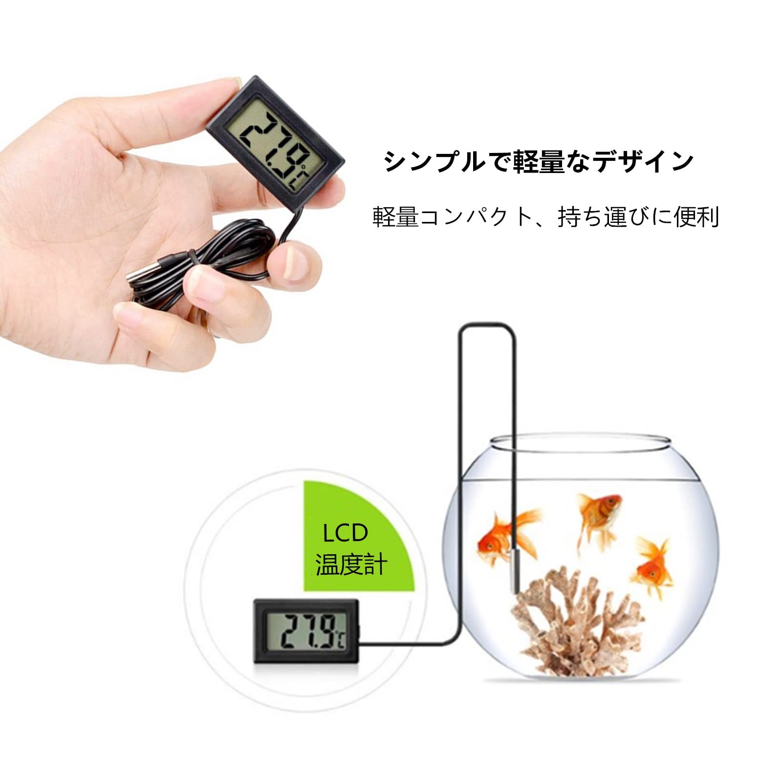 デジタルLCD温度計 温度計-50℃〜110℃ プローブ付き 爬虫類テラリウム魚タンク冷蔵庫用 水槽 水温管理 水族館温度計 (ブラック 4個セット)