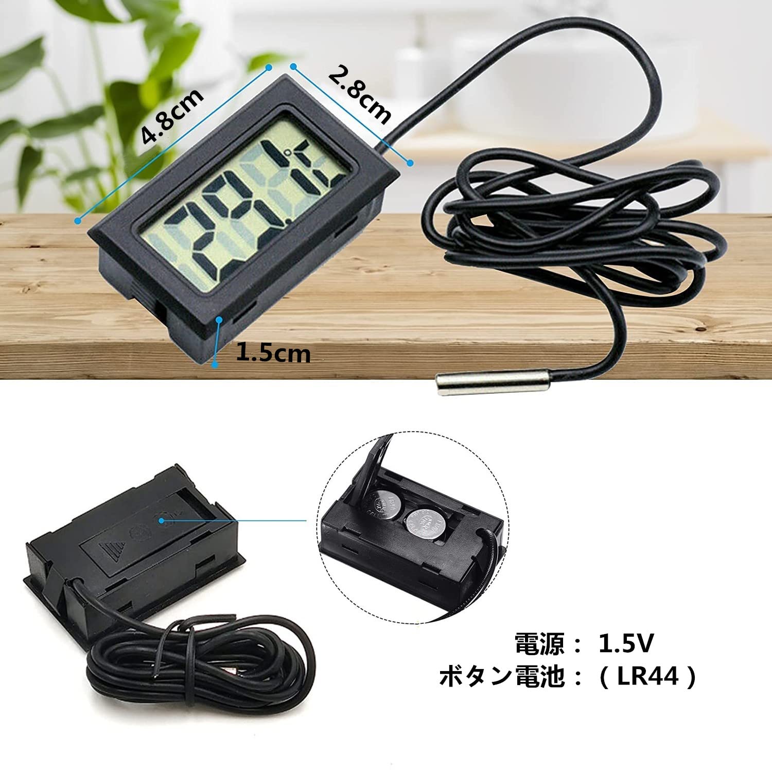 【特価処分】 デジタルLCD温度計 温度計-50℃〜110℃ プローブ付き 爬虫類テラリウム魚タンク冷蔵庫用 水槽 水温管理 水族館温度計 (ブラック 4個セット)