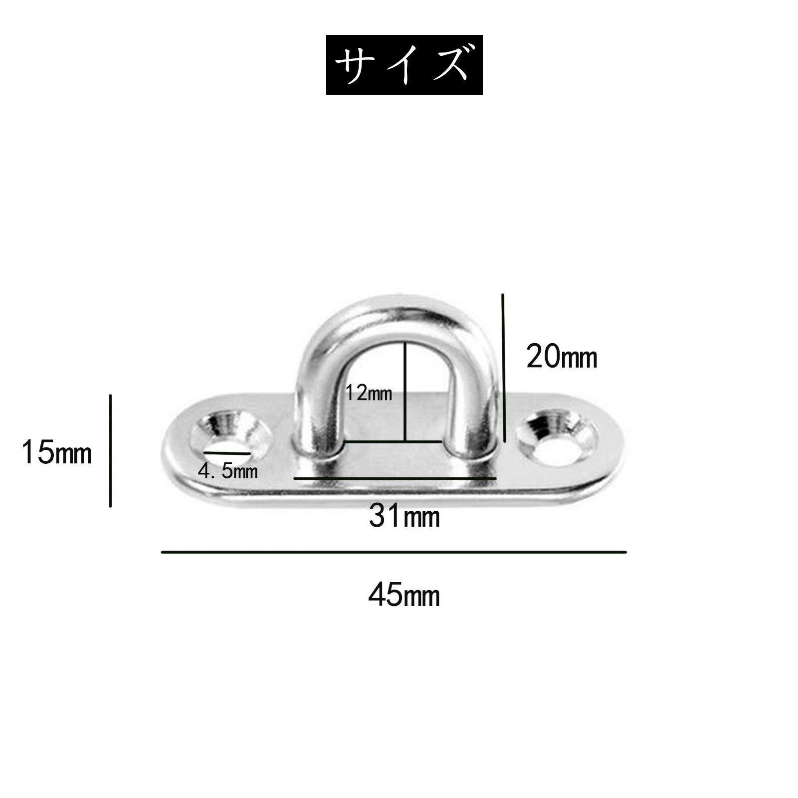 長方形パッドアイ 10個入り ネジ20個付き アイプレート ステンレスループ 304ステンレス鋼製 M5 天井フック U型 金具 固定 取り付け