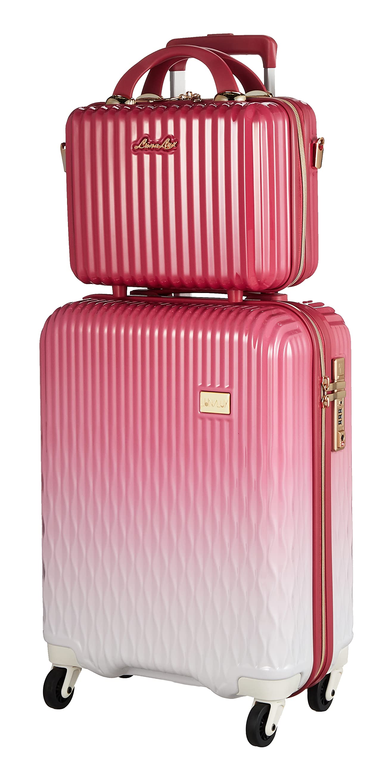 スーツケース生産数日本一「siffler」が自信を持ってお届けする話題のLUNALUXシリーズ。 ボディはグラデーションでお洒落可愛い! キャリーオン可能な小型ケース付き。ショルダーバッグ&手提げバッグとしても使用できます。女性なら一度は使ってみたいスーツケース。インスタなどSNSでも大活躍。素敵な思いで作りのパートナーとして、またプレゼントとしてもお勧めです。
