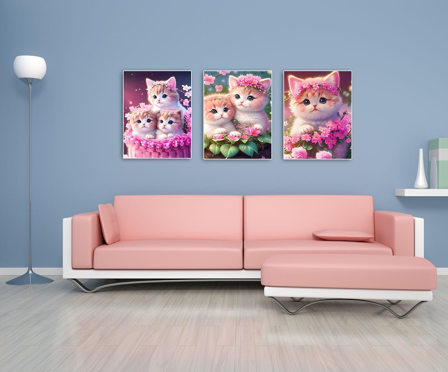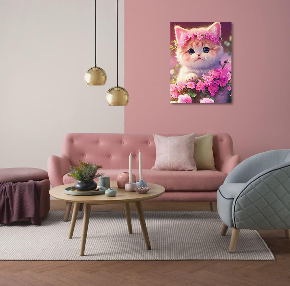 3個セット ダイヤモンドアート キットBetterJonny ダイアモンドビーズ絵画キット 5D ダイヤモンド キットアート壁アート ピンクの猫 手作り絵画手芸キット 全面貼り付けタイプ DIY 手芸キット初心者 大人 子供 30x40cm