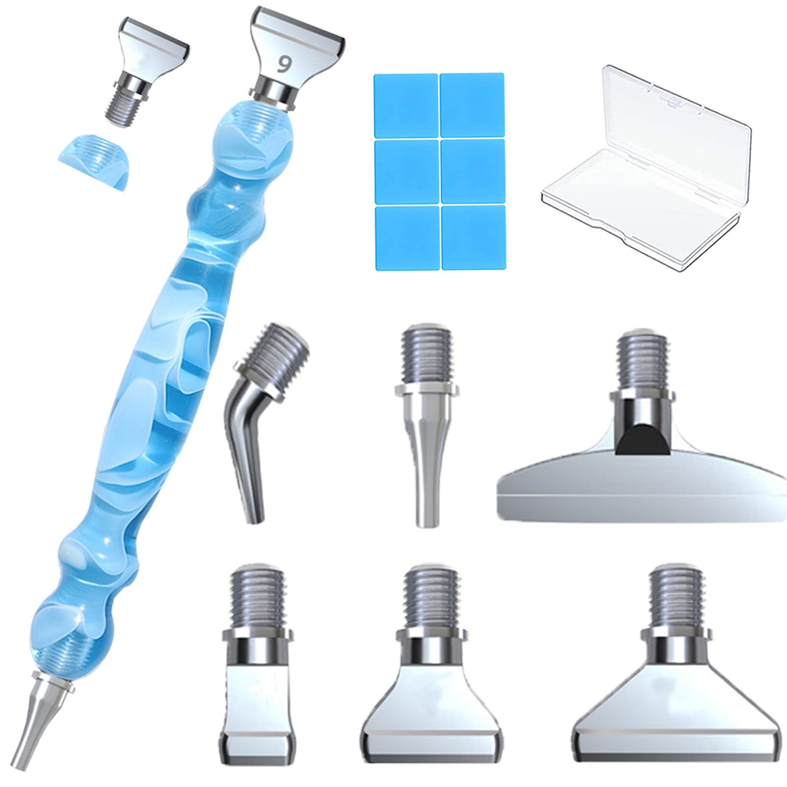 LIBIFUN 14個 金属ねじ先端 ダイヤモンドペインティングペンキット ダイヤモンドアートペン 先端6本 接着剤粘土6本 5Dダイヤモンドペインティングアクセサリーツール DIYクラフト用 コンフォートグリップ (スカイブルー)