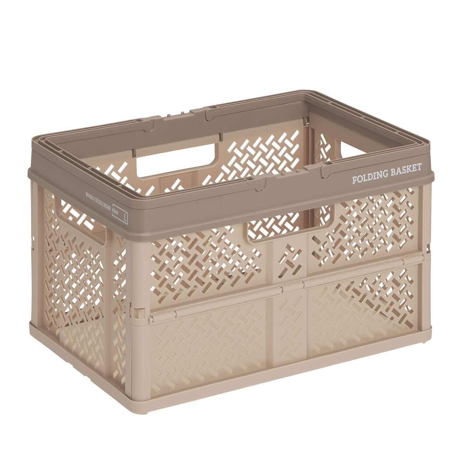 【在庫のみ】天馬(Tenma) 折りたたんでコンパクトになる持ち手付きの収納ボックス 完成品 折りたたみバスケット Lサイズ お部屋に馴染むデザインの折り畳みコンテナ オリコン カゴ B4ファイルがぴったりのバスケット プラスチック 【組立不要】 【色 ベージュ】 【サイズ L】 【幅46×奥行31×高さ28cm】【折りたたみ時 高さ7cm】