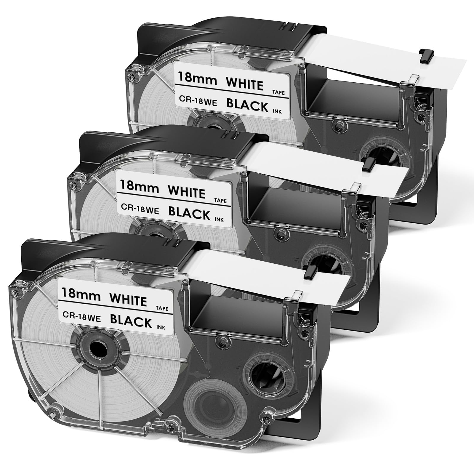 3個 18mm 白地黒文字 CR-18WE テープカートリッジ と互換性のある カシオ ラベルライター ネームランド テープ CASIO(XR-18WE)Asprinte