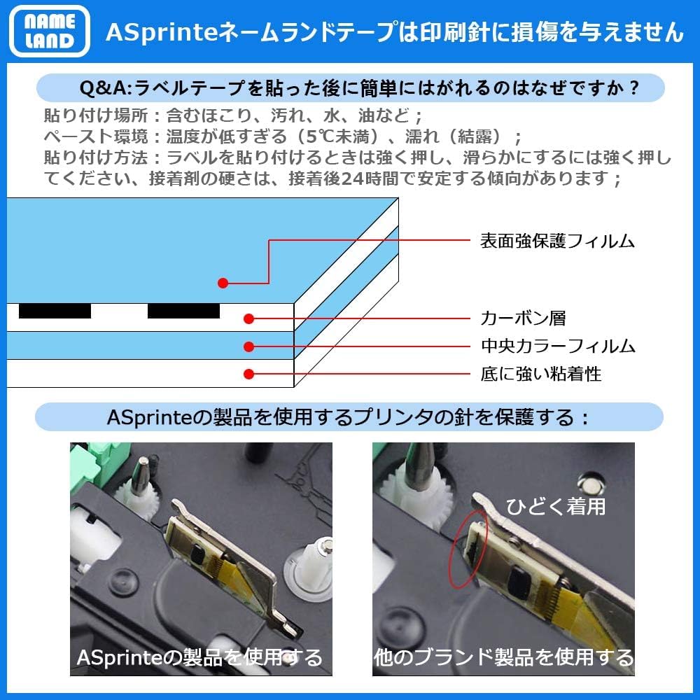[ サイズ ]: 幅--18mm 長さ--8m。ASprinte互換ネームランド テープ 18mmは防水性、腐食防止性。純正品と遜色なく、お得な互換品です。