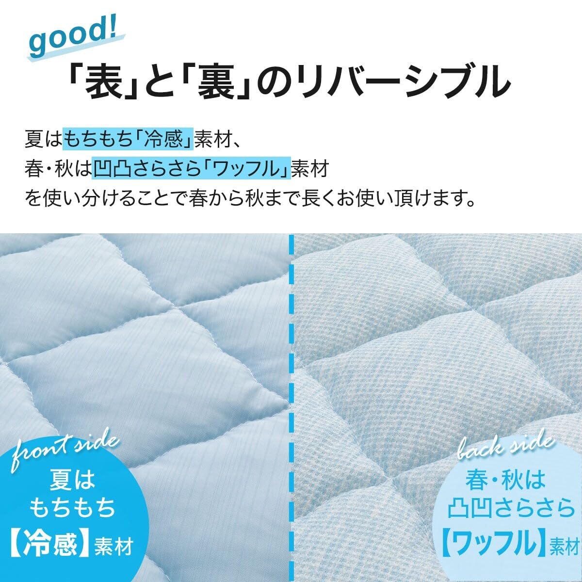 夏はもちもち「冷感」素材、春・秋は凹凸さらさら「ワッフル」素材を使い分けることで春から秋まで長くお使い頂けます。
