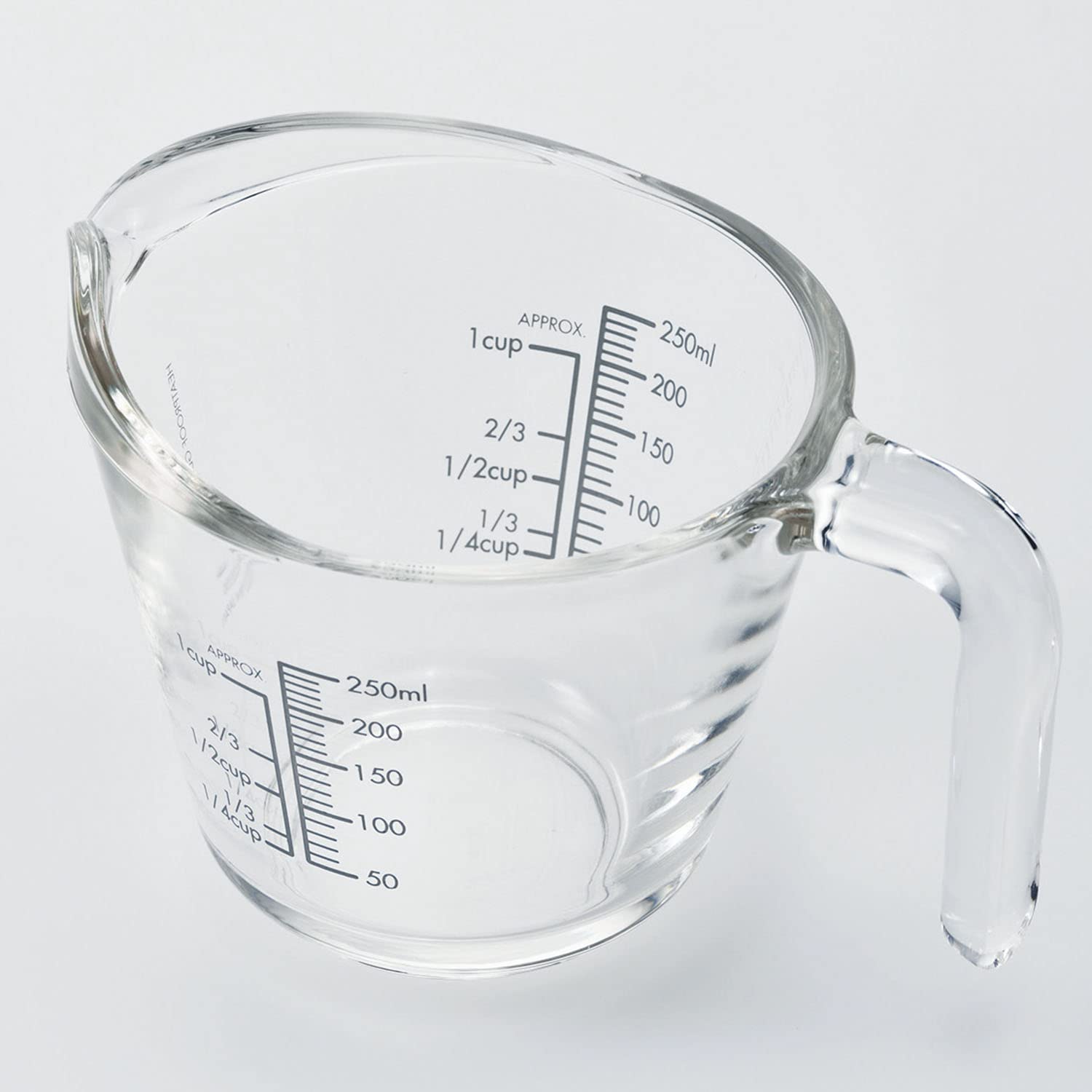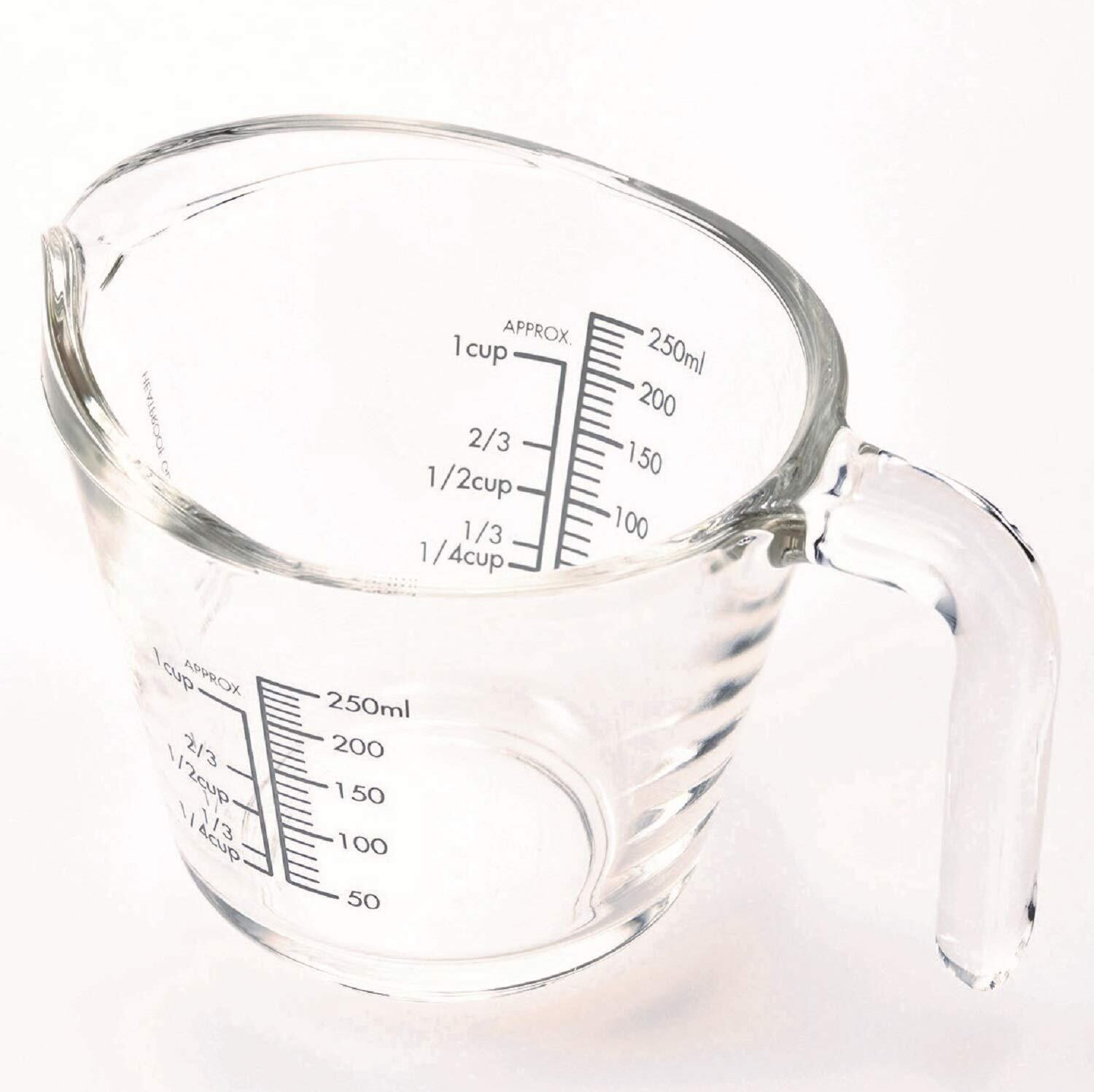 シンプルで使いやすく、衛生的に使える、耐熱ガラス製のメジャーカップ