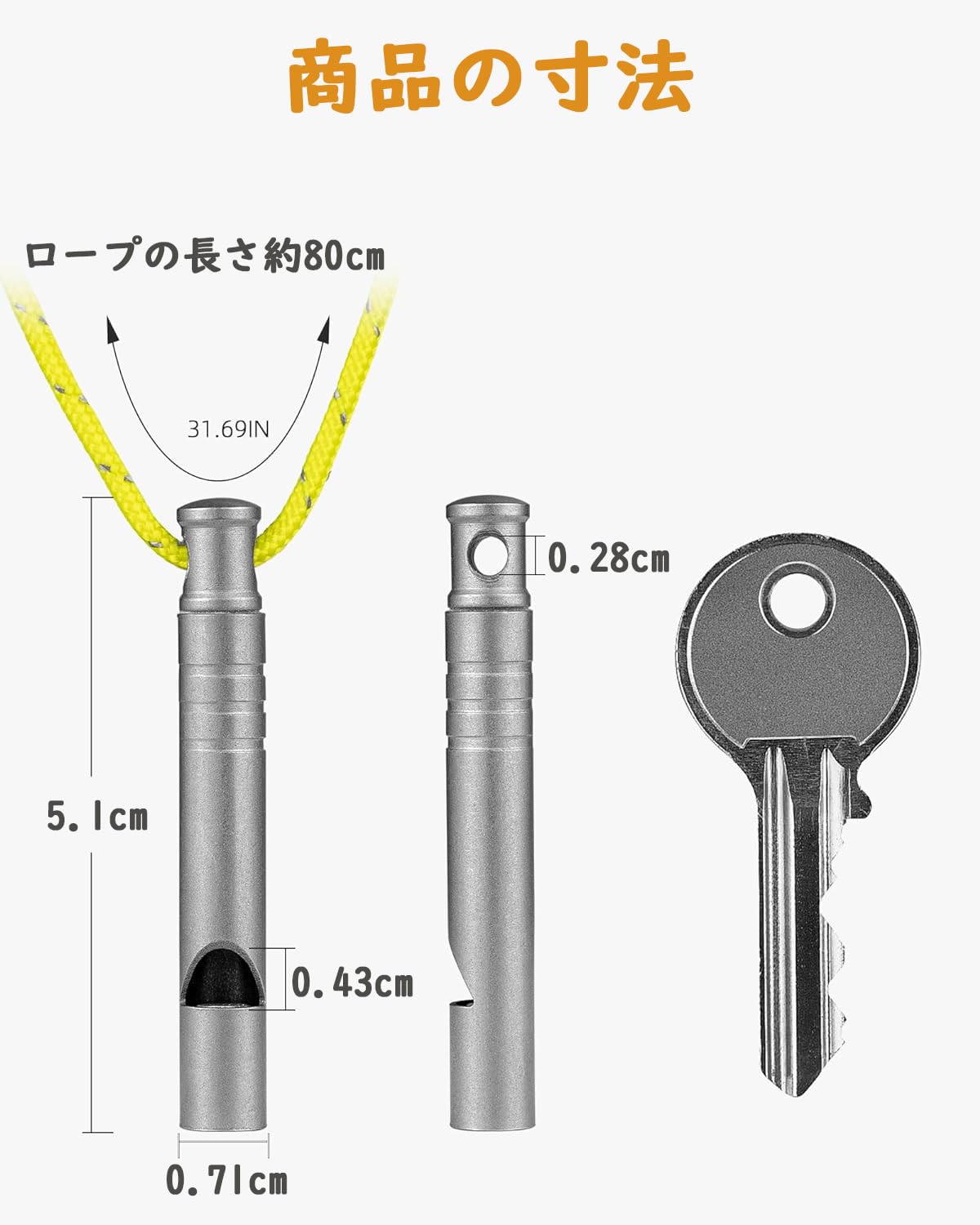 包装内容:チタン製ホイッスル*2+ ロープ*2