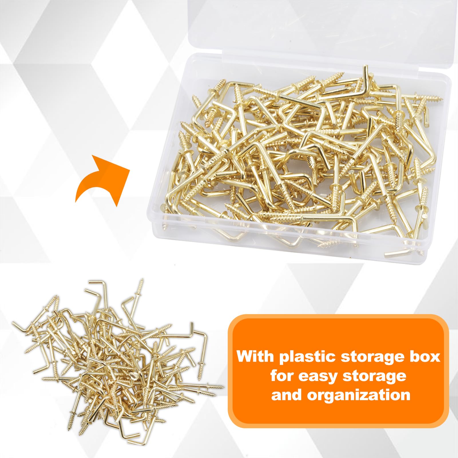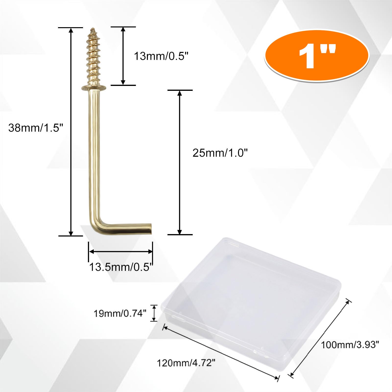 SPEEDWOX 100PCS直角ネジフック1インチ、ねじ込み式スクエアベンドフック、家庭、オフィス、職場用の収納ボックス付きL字型ネイルフックファスナーアクセサリー