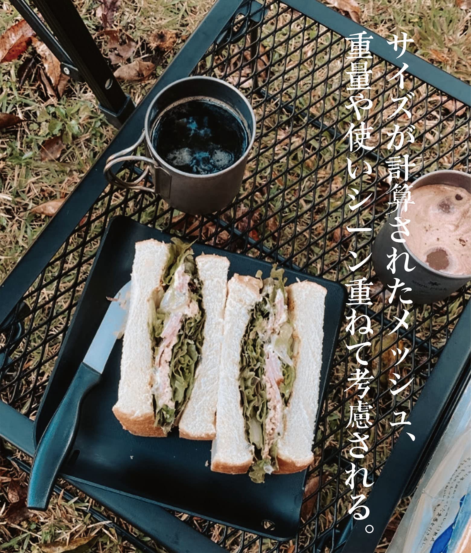 ?焚き火テーブルとして利用することはもちろんOK!魚、肉、野菜などの食材を直火に焼くのはできませんので、ご注意ください!バーベキュー網、フライパンなどの調理器具を使用してください。
