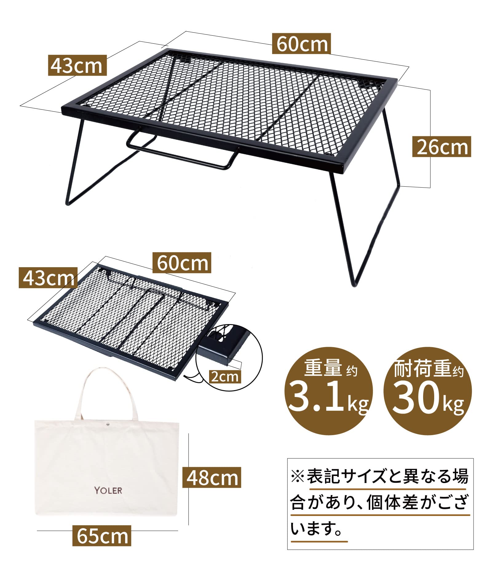 ヨーラー(YOLER) メッシュテーブル 大型焚き火テーブル 折りたたみ式 専用収納ケース付き 60×43×26cm YR-MT007