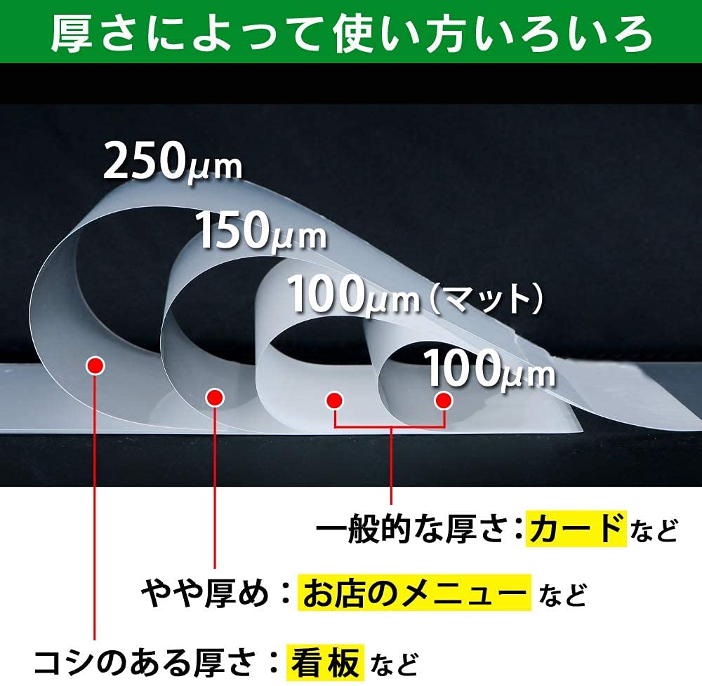 用紙にツヤと張りを出し、水や汚れからしっかりガードするラミネートフィルムです。