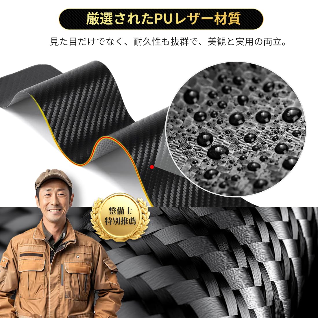 『厳選されたPUレザー材質・長くお使いいただけ』高品質PUレザーを贅沢に使用!傷や摩擦に強く、長期間使用しても色褪せません。柔らかくて滑らかな手触り、そして高級感溢れるデザインで、車内のインテリアにもぴったり。見た目だけでなく、耐久性も抜群だから、長くお使いでもいただけます。既に存在する傷を隠し、新たなのを防ぎ、まさに美しさと機能性を両立させる最適なアイテムです。