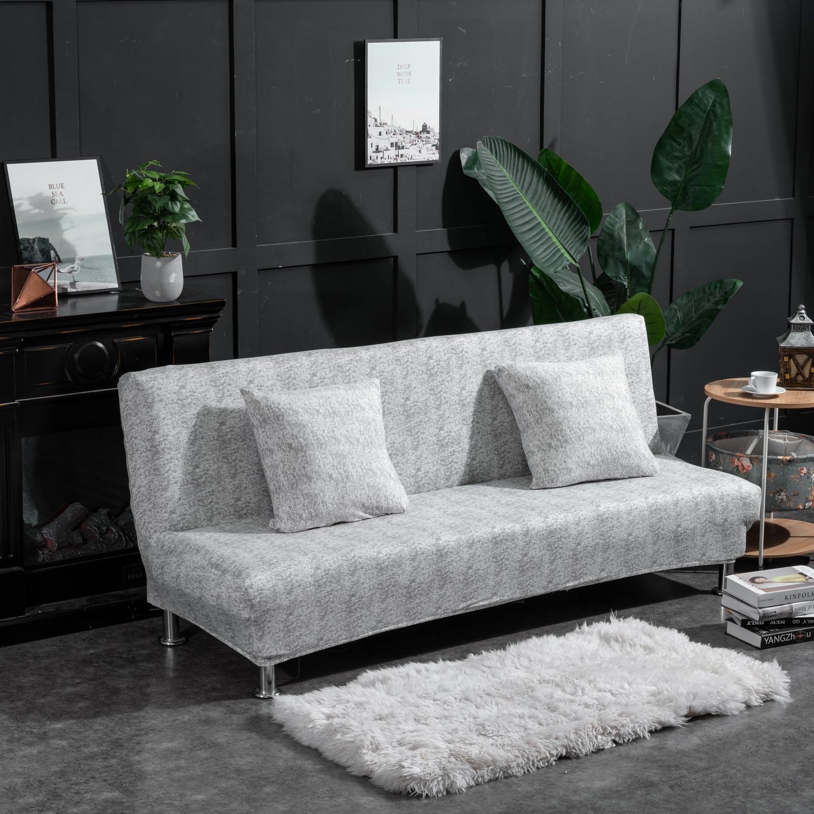 【数量限り】ソファーカバー 2人掛け 伸縮素材 ソファベッドカバー 肘なし 柔らかい 犬 猫 傷 防止 クッションカバー2枚付 収納便利 四季通用 幅160-190cm(ライトグレー)
