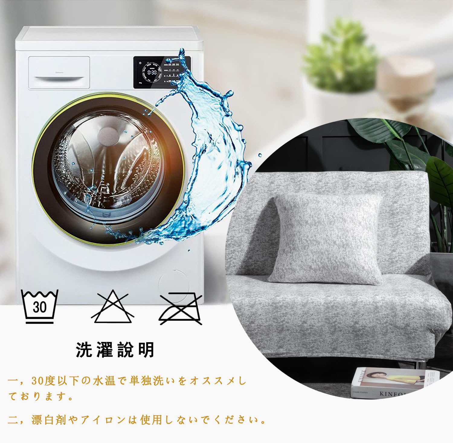 【洗濯機で丸洗いOK】色も変色なし、生地も変形してなかったので。漂白剤を使用せず、違う色の衣類と一緒に洗濯しないでください。